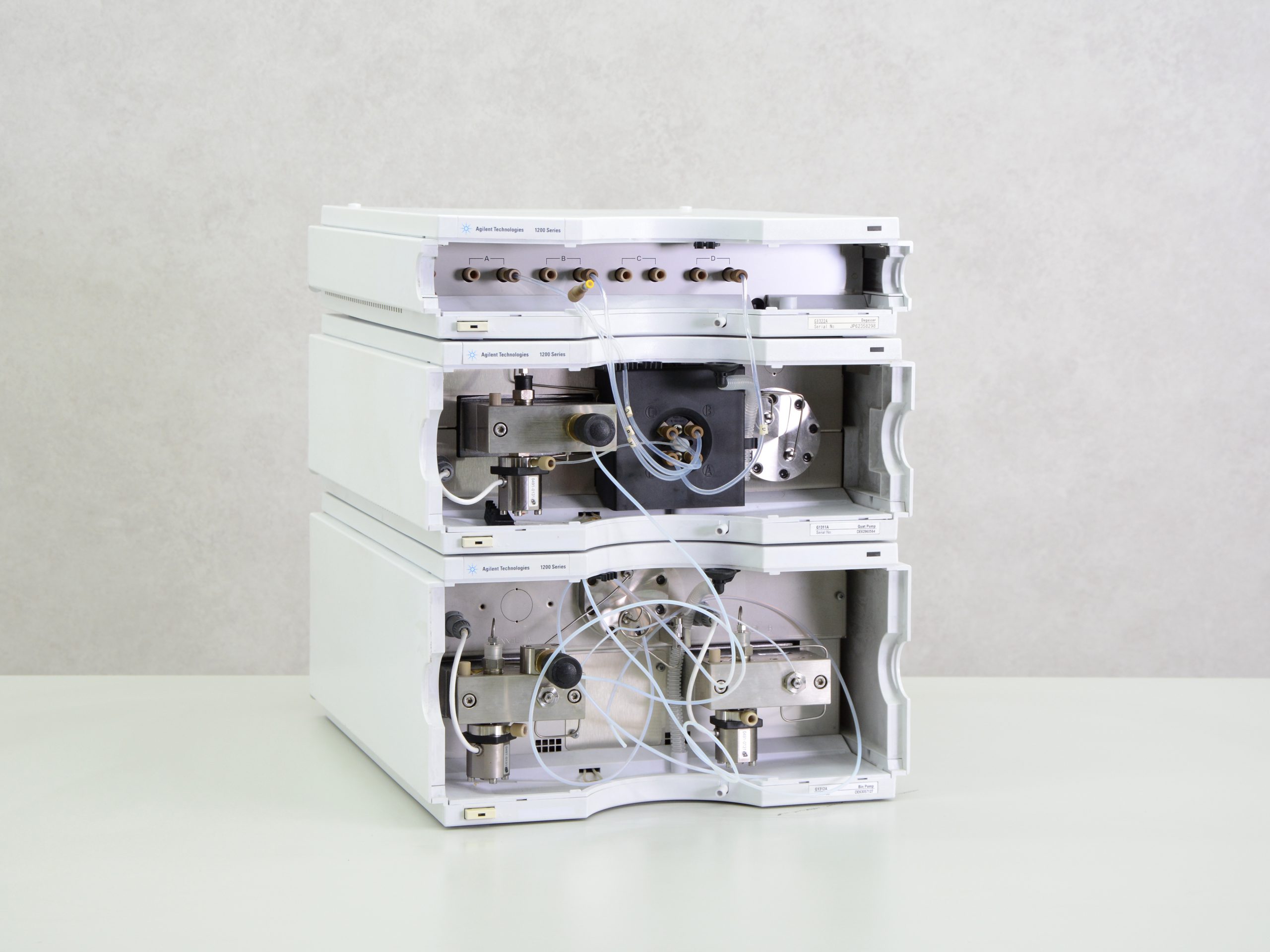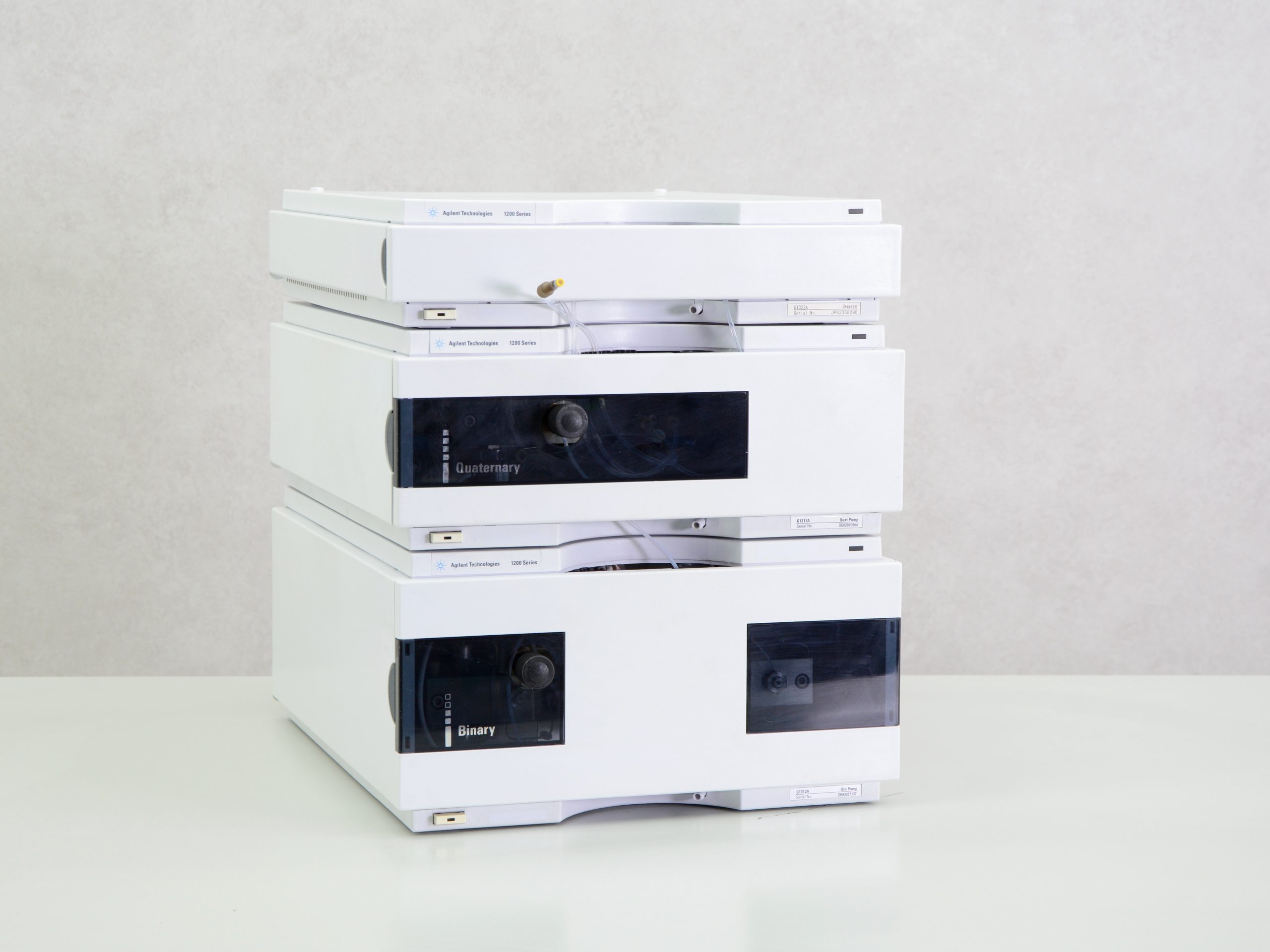 The HPLC of the brand Agilent type 1200 series is supplied with the G1311A quaternary pump system, G1312A binary pump and G1322A vacuum degasser. The Agilent HPLC 1200 series can be used for both analytical and production applications. This HPLC will be delivered without software.