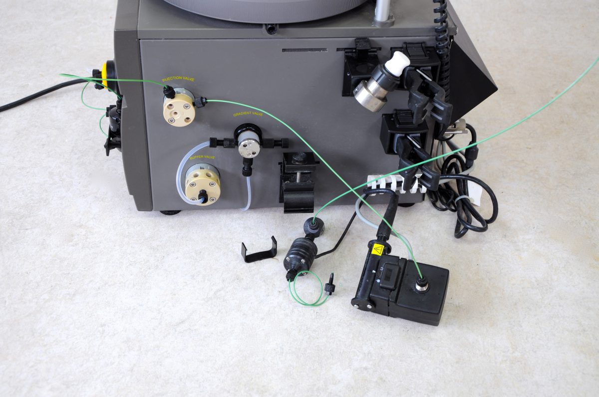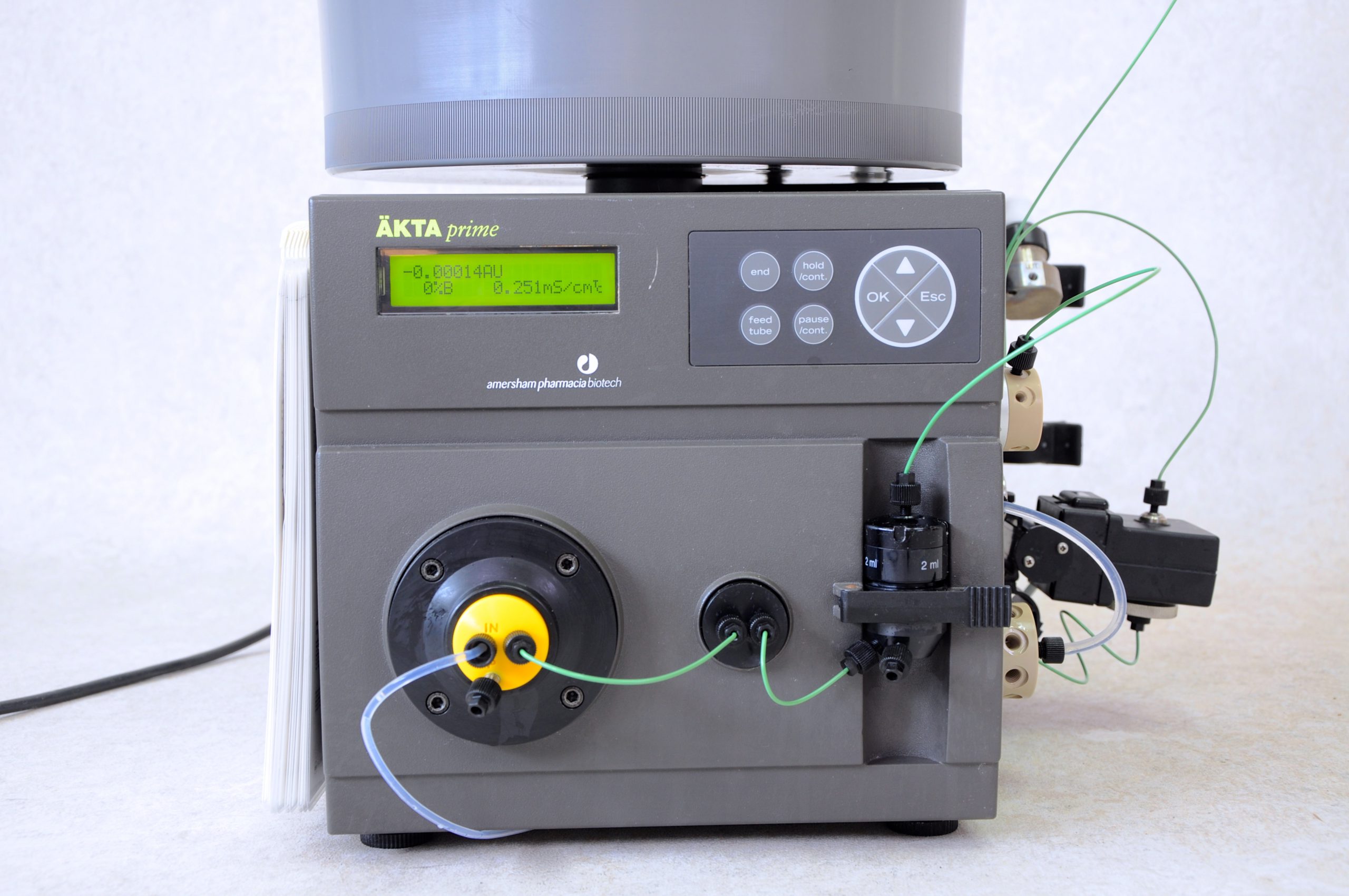The Äkta Prime Plus FPLC System is a flexible chromatography system that performs one-step purifications of tagged and untagged proteins and antibodies. For optimal results, use pre-packed columns, such as the HiTrap, HiPrep and HiLoad columns that simply snap onto the side of the unit.