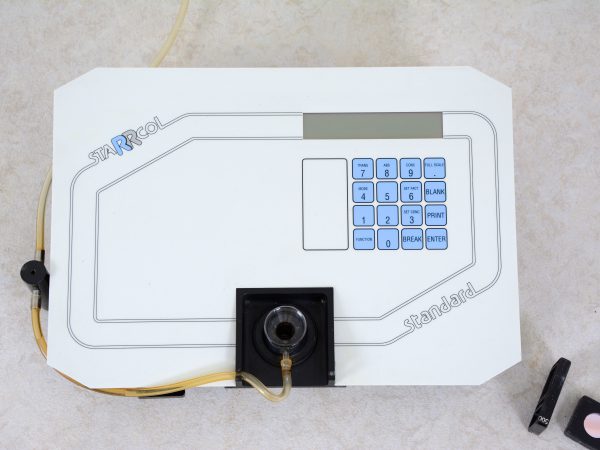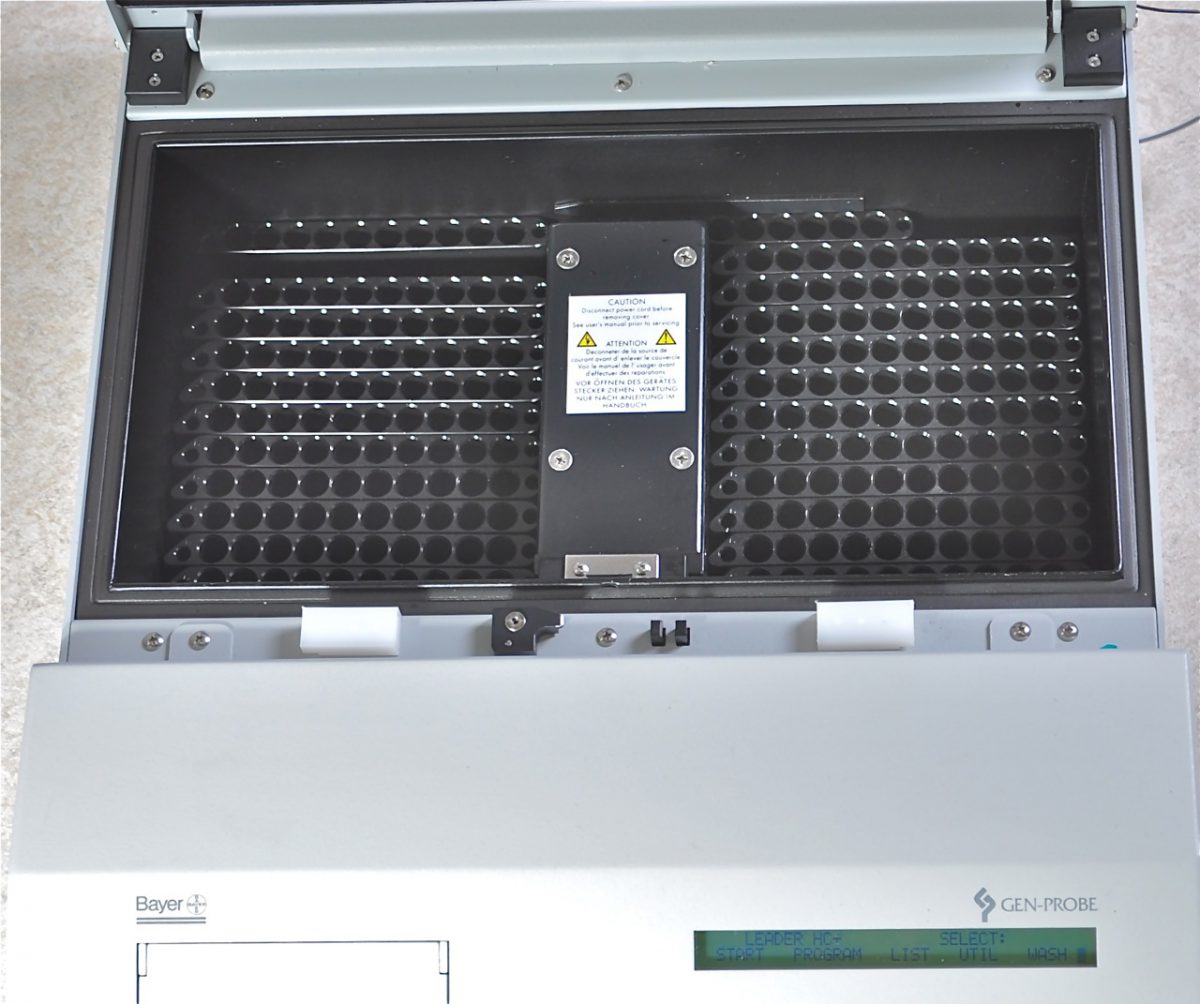 Luminometer of the manufacturer Bayer, type HC +. A sensitive photometer used for measuring very low light levels, as those produced in a luminescent process. Used for rapid testing of microbiological contamination.