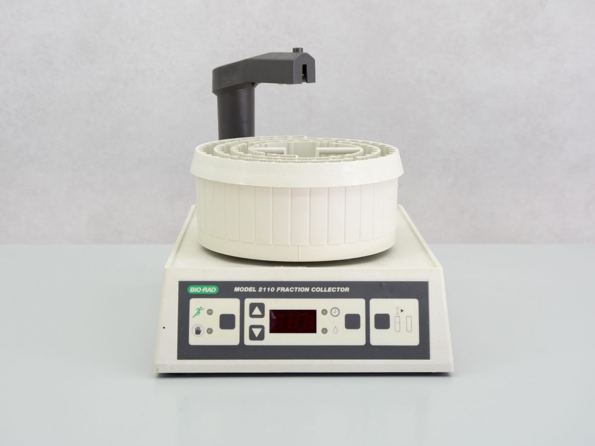 The fraction collector of the carousel type is capable of collecting from 1 drop (~ 50 μL) to 9 mL fractions in 80 test tubes or micro tubes. The dosing amount in time can be controlled when connected to the Model EP-1 Econo pump, the BioLogic LP system or the BioLogic DuoFlow system.