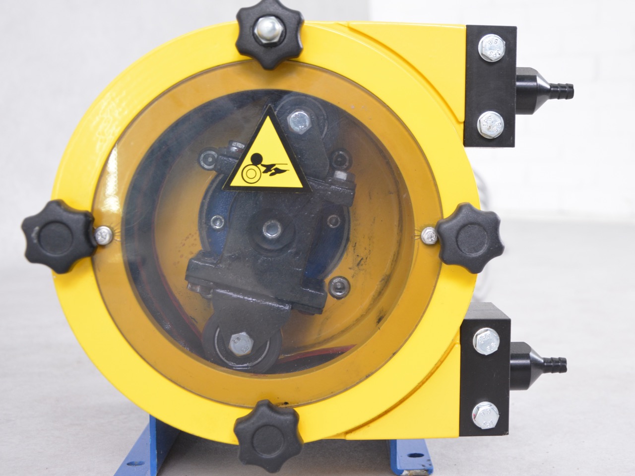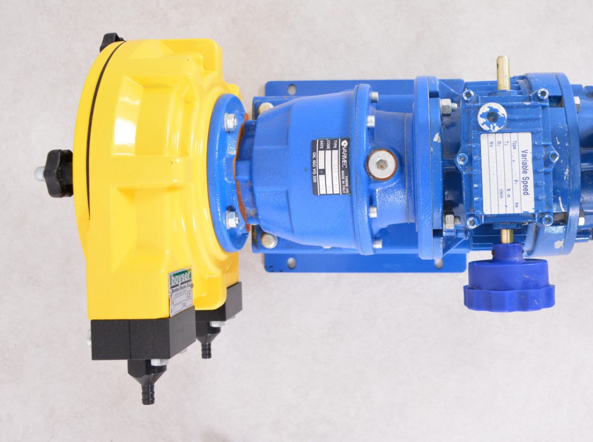 Self-priming peristaltic pump of Boyser type AMP-16/C is suitable for pumping of liquids out without the device itself gets damaged. This pump has a fixed number of revolutions of 50rpm and this one can be supplied with a frequency inverter against additional charge.