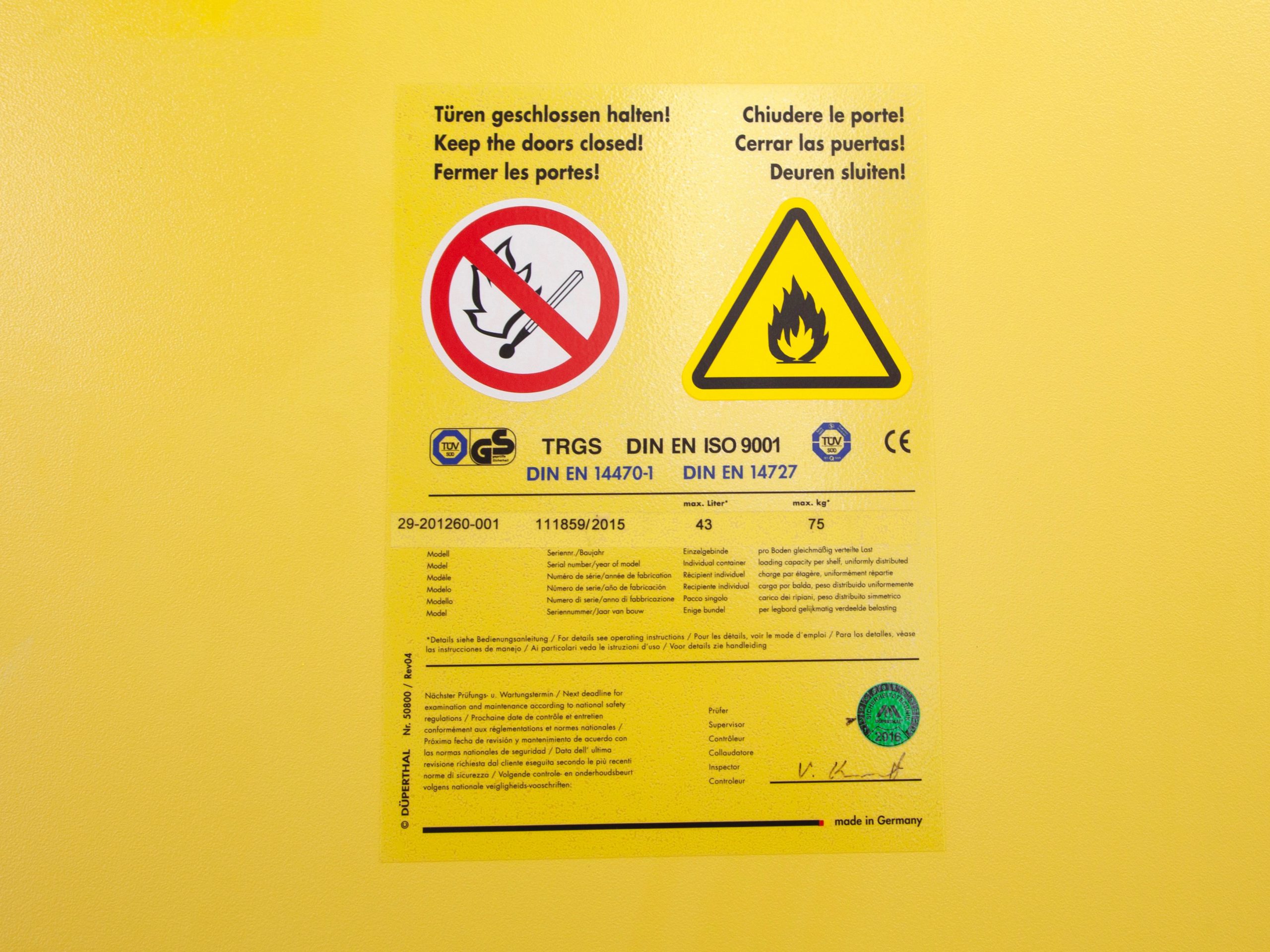 This Dupa Typ 90 safety storage cabinet is suitable for safely storing hazardous substances up to 90 minutes of protection in case of fire ensures maximum safety.