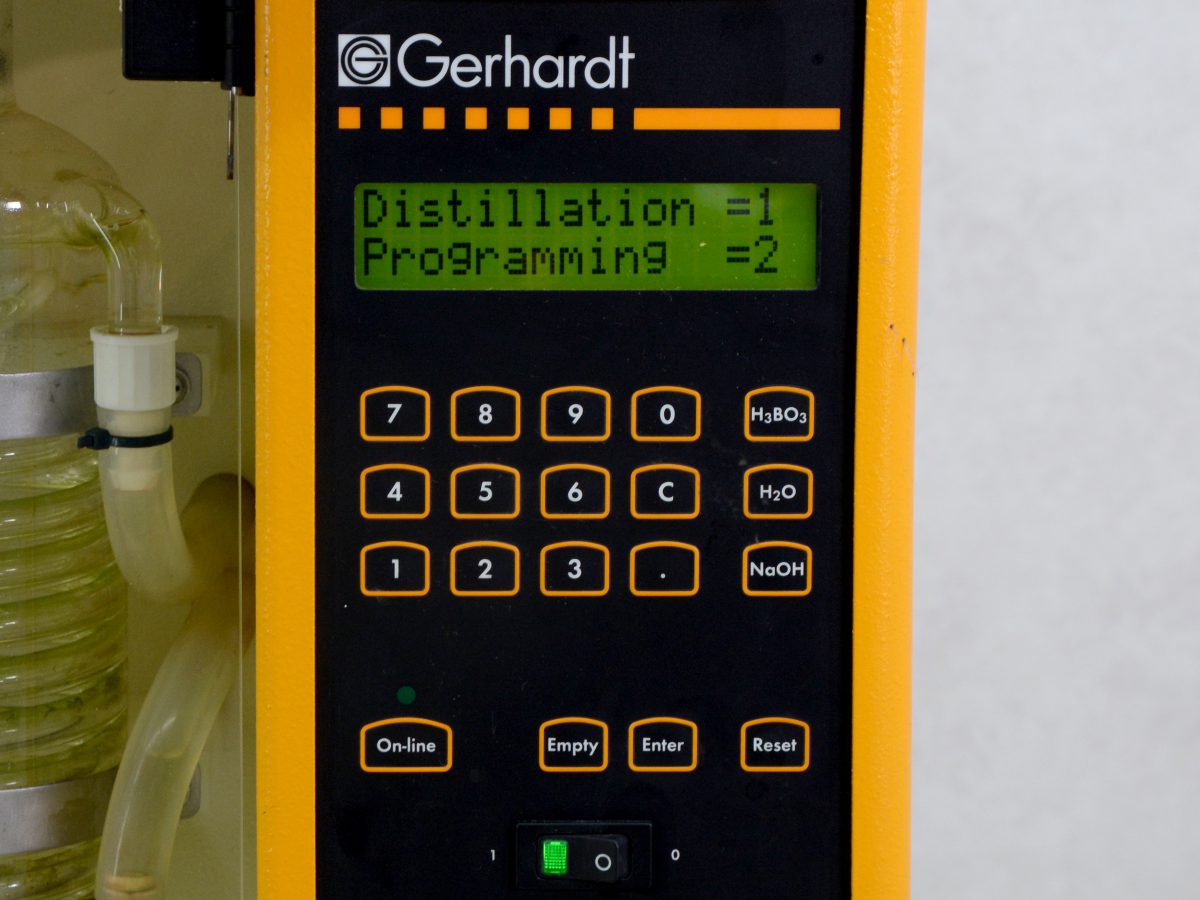 The vapodest of the brand Gerhardt type VAP40 is ideally suited for nitrogen analysis and protein analysis according to the Kjeldahl method.