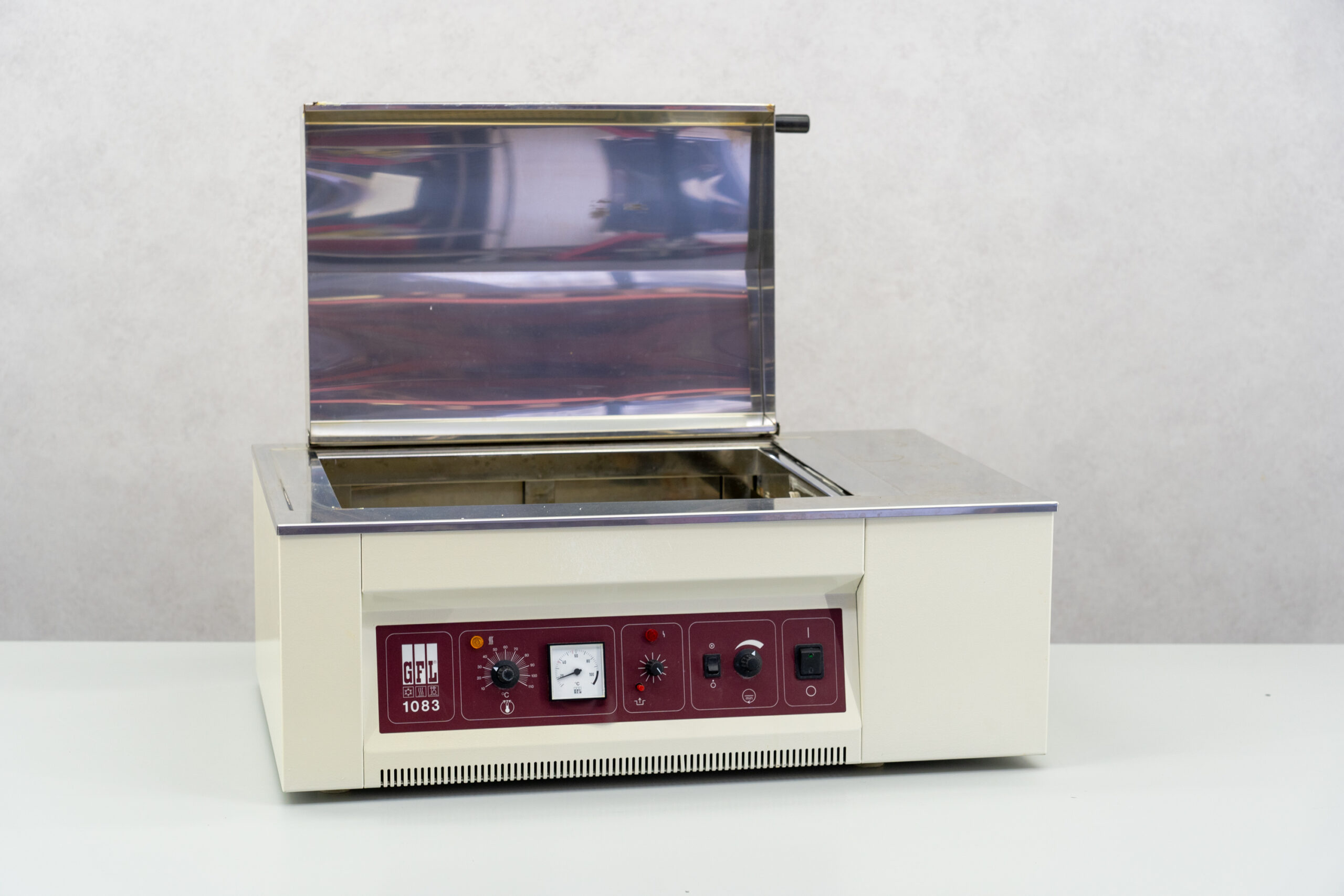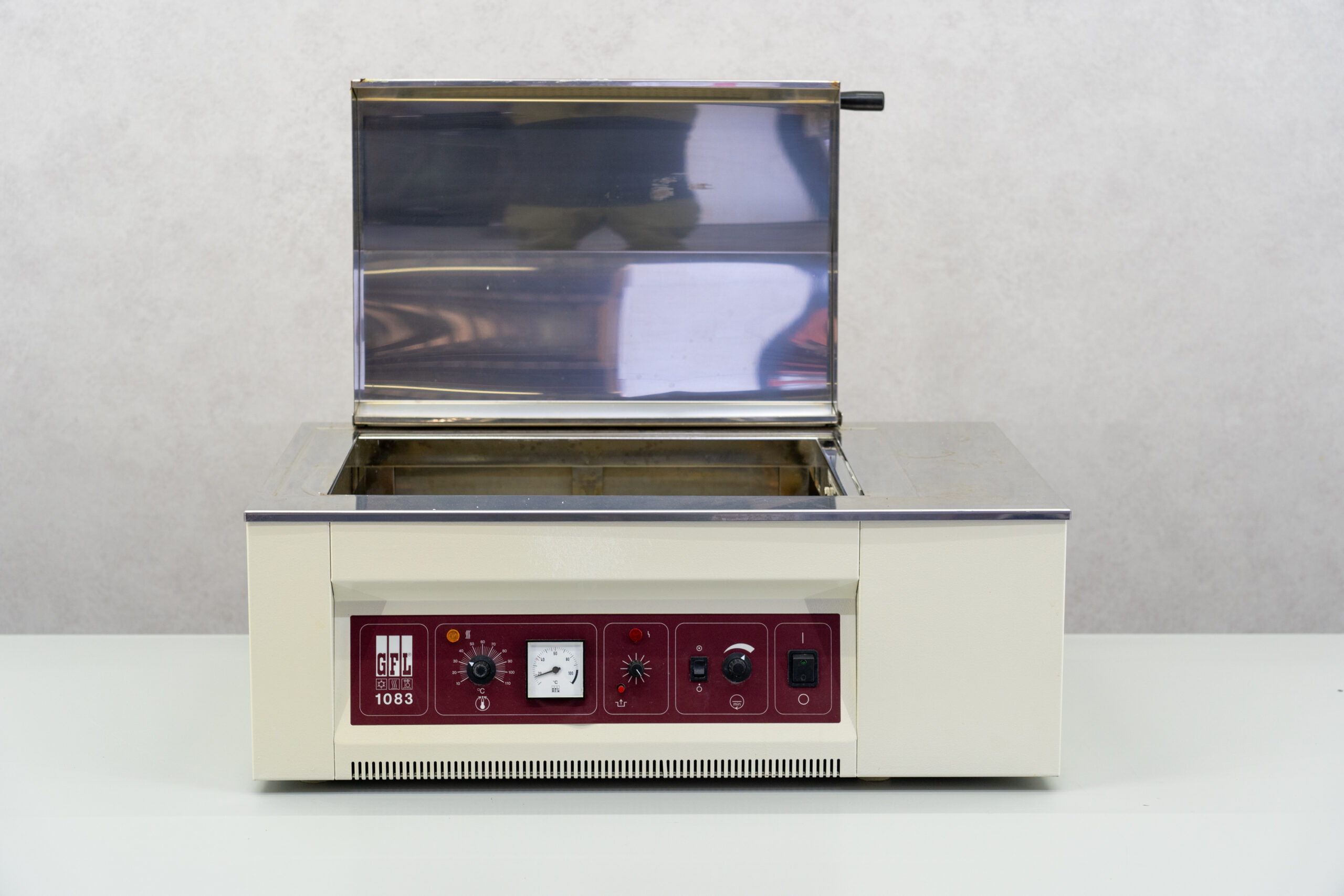 The shaking water bath from GFL, type 1083, is designed for heating and shaking different samples using back and forth movements. The GFL 1083 is ideal for incubations, fermentations, homogenizations, chemical and biochemical reactions.