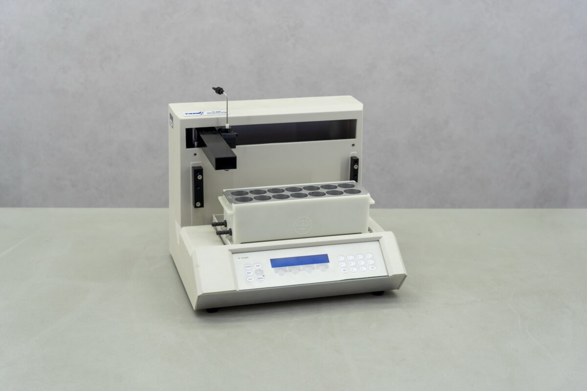 This Gilson FC203B is a compact fraction collector for a wide range of collective samples (microplates, vials and tubes). The Built-in keyboard makes installation and operation simple and efficient, with easy connection to your HPLC system.