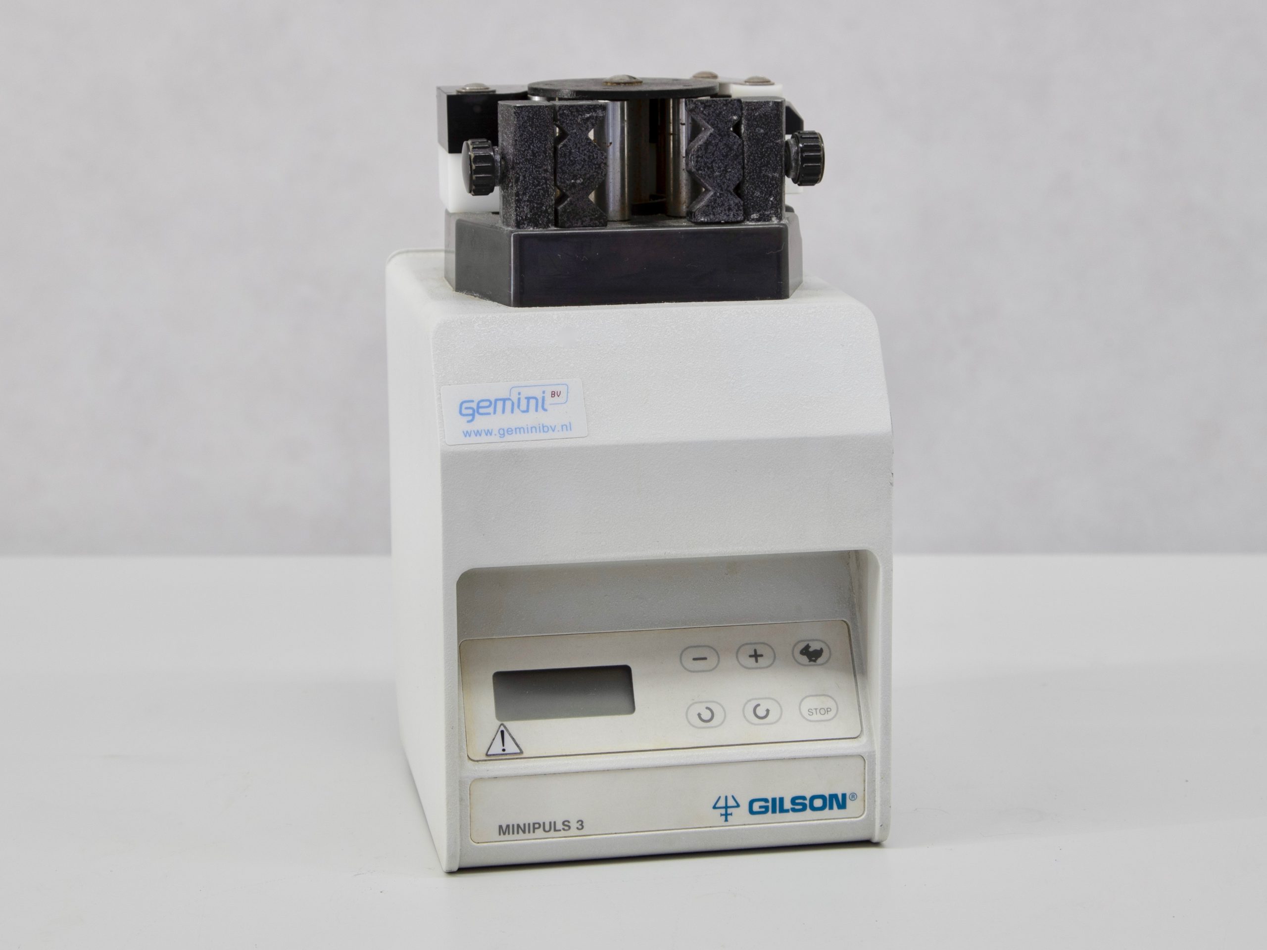 The two-channel peristaltic pump of the brand Gilson type Minipuls 3 is ideal for the transport of liquids, whereby both the liquid and the pump do not become contaminated. The Gilson Minipuls 3 is suitable for the delivery of culture media, buffers and solutions.
