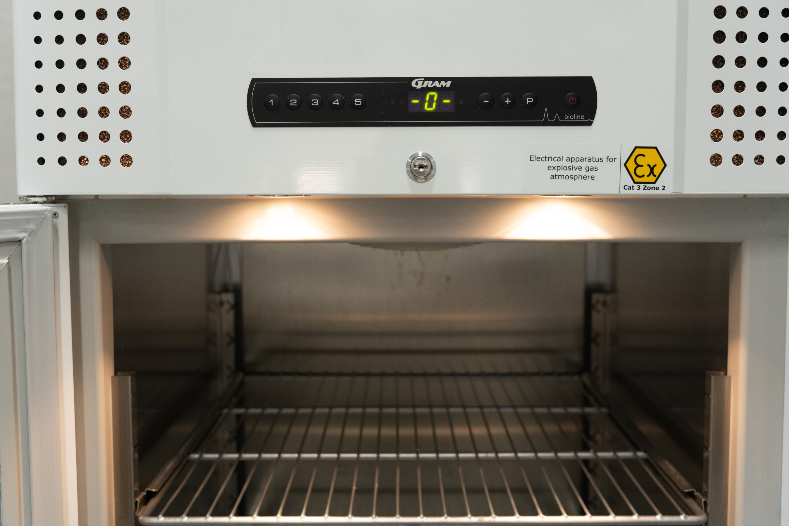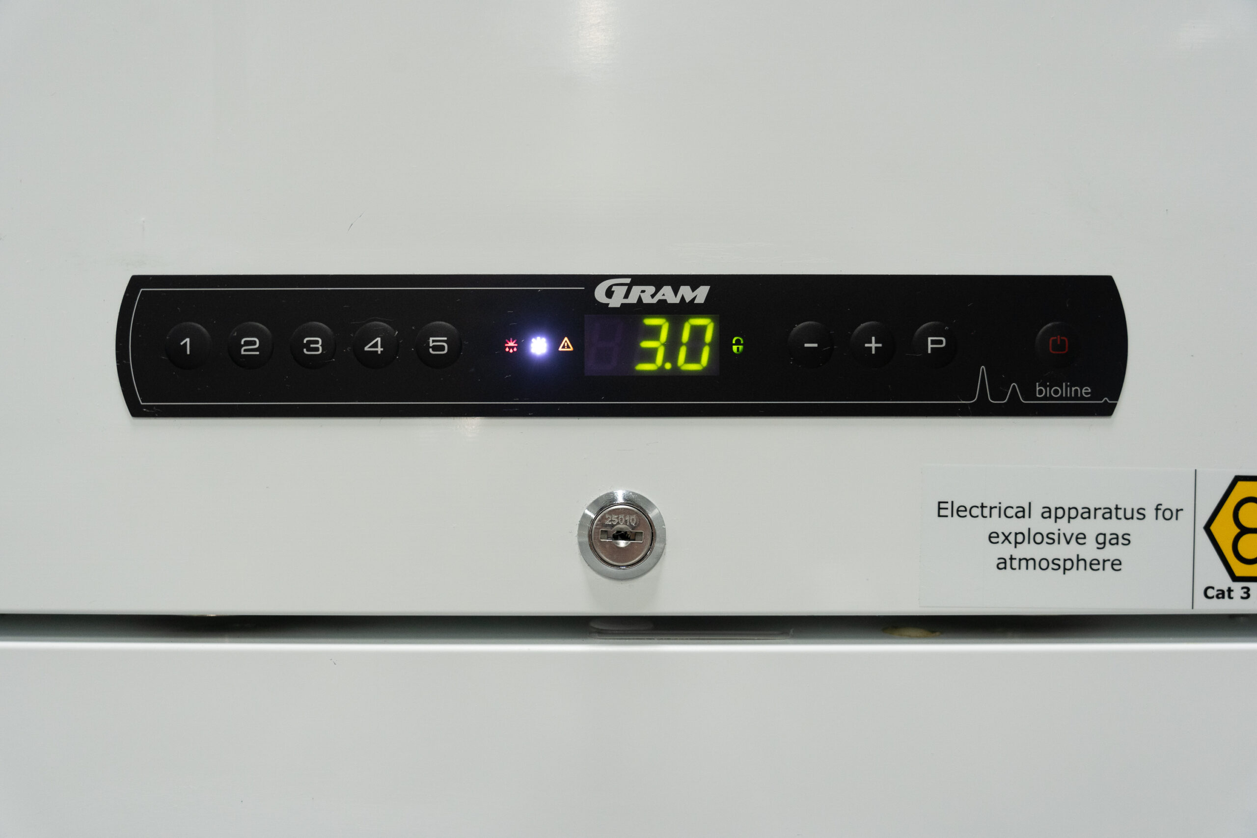 The Gram BIOPLUS RF660D Explosion-proof -20 freezer is an explosion-proof laboratory freezer. The freezer is equipped with wheels and 4 coated grids. In addition, the freezer is equipped with a foot pedal opener, so that the door can be opened with the foot.