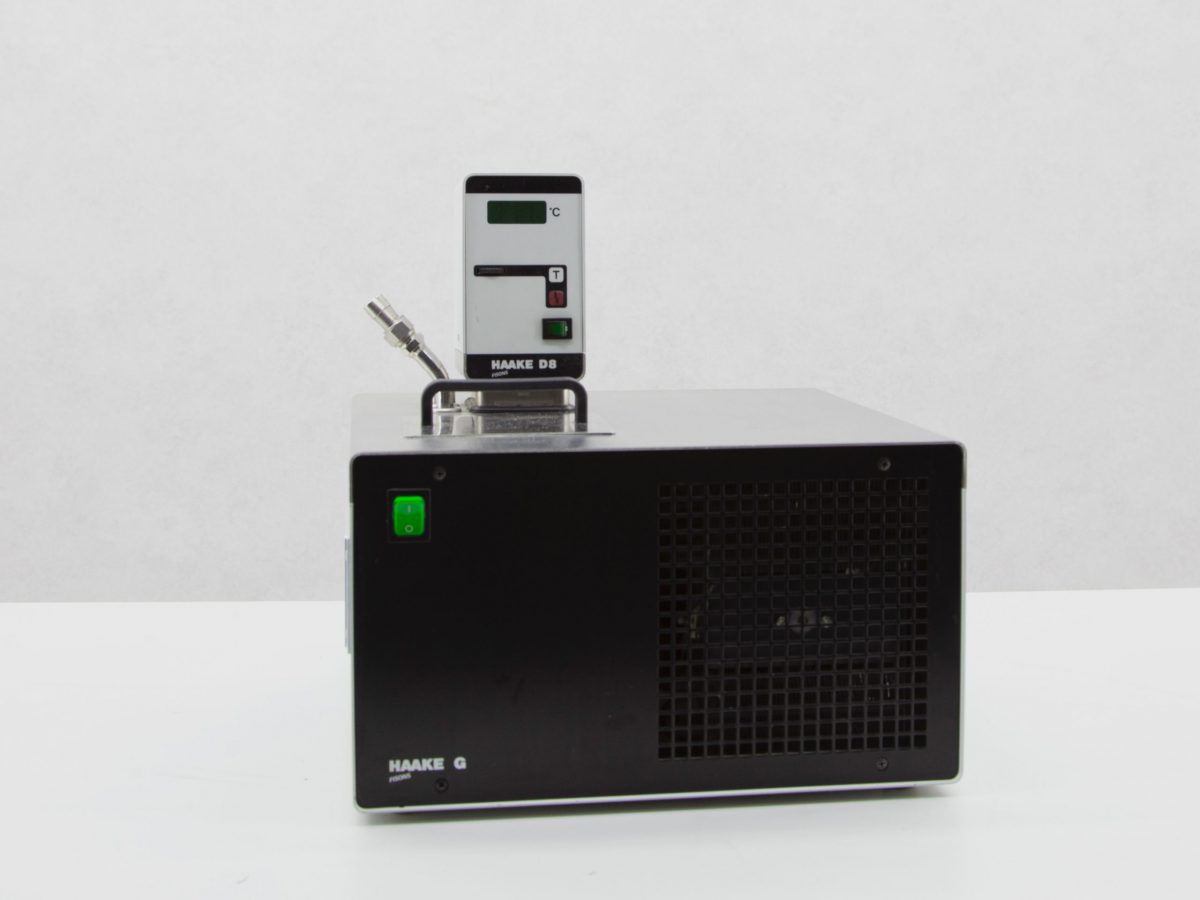 The refrigerating water bath of the Haake brand G type and D8 thermostat is ideal for circulating liquids with a constant temperature through external closed systems, such as photometers, refractometers, viscometers, polarimeters and spectrophotometers. In addition, the Haake G can be used to keep different samples at the right temperature.