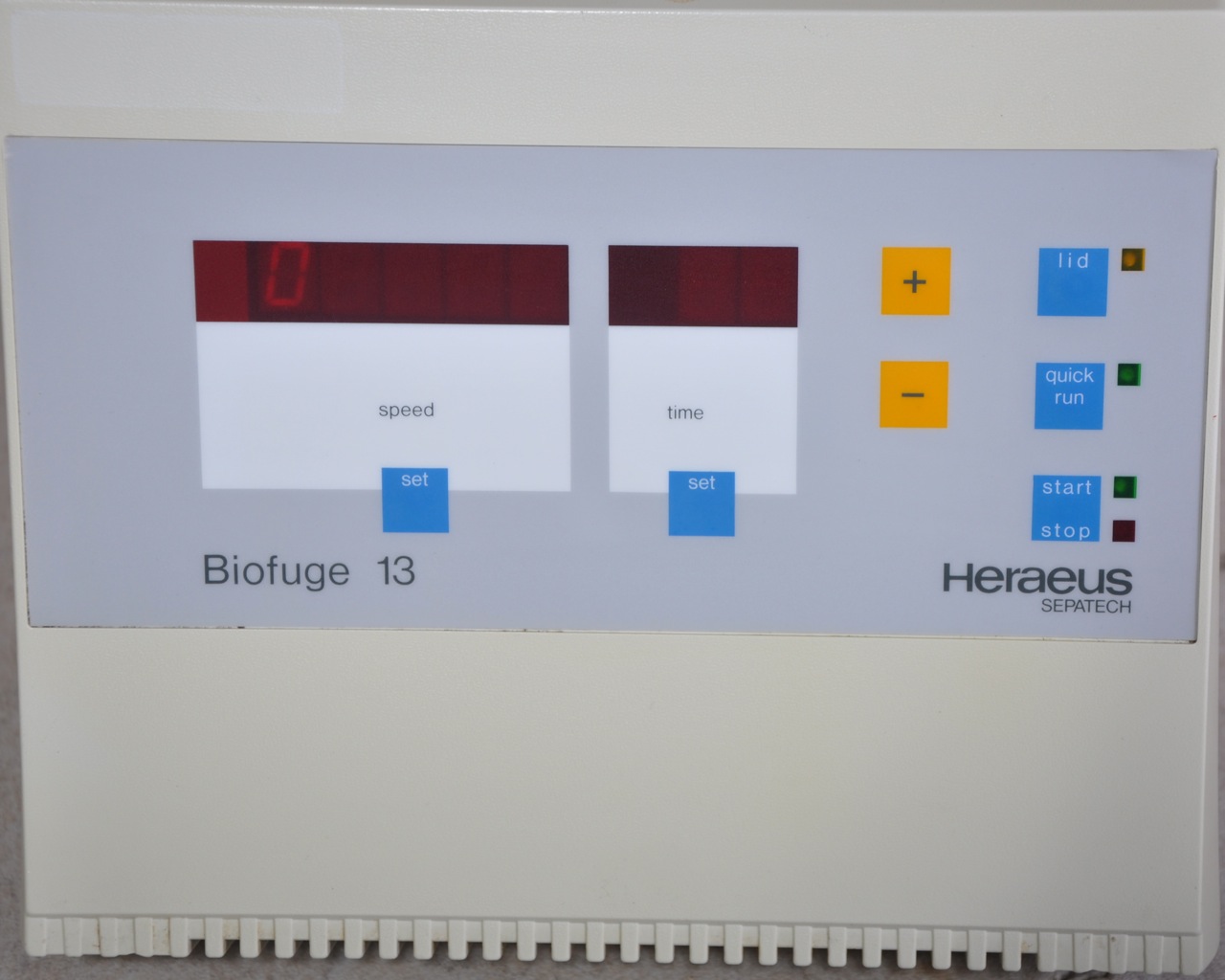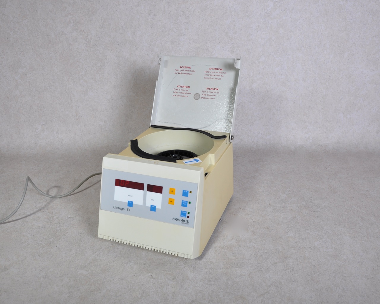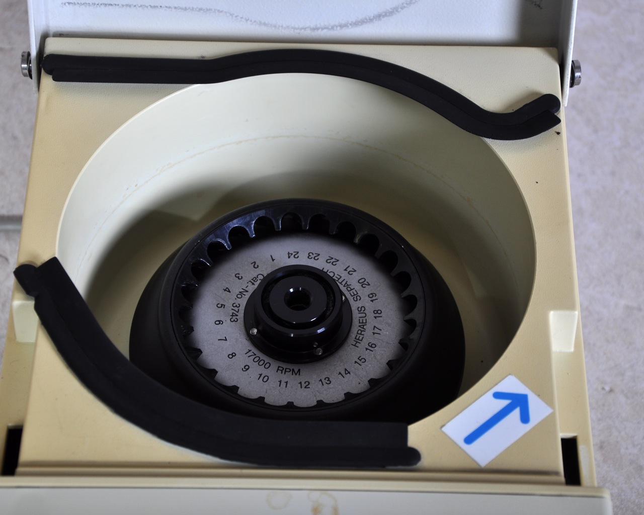 Used high speed laboratory centrifuge from Heraeus, type Biofuge 13 with Hereaus Sepatech rotor (24 x 1.5 ml), number 3743.