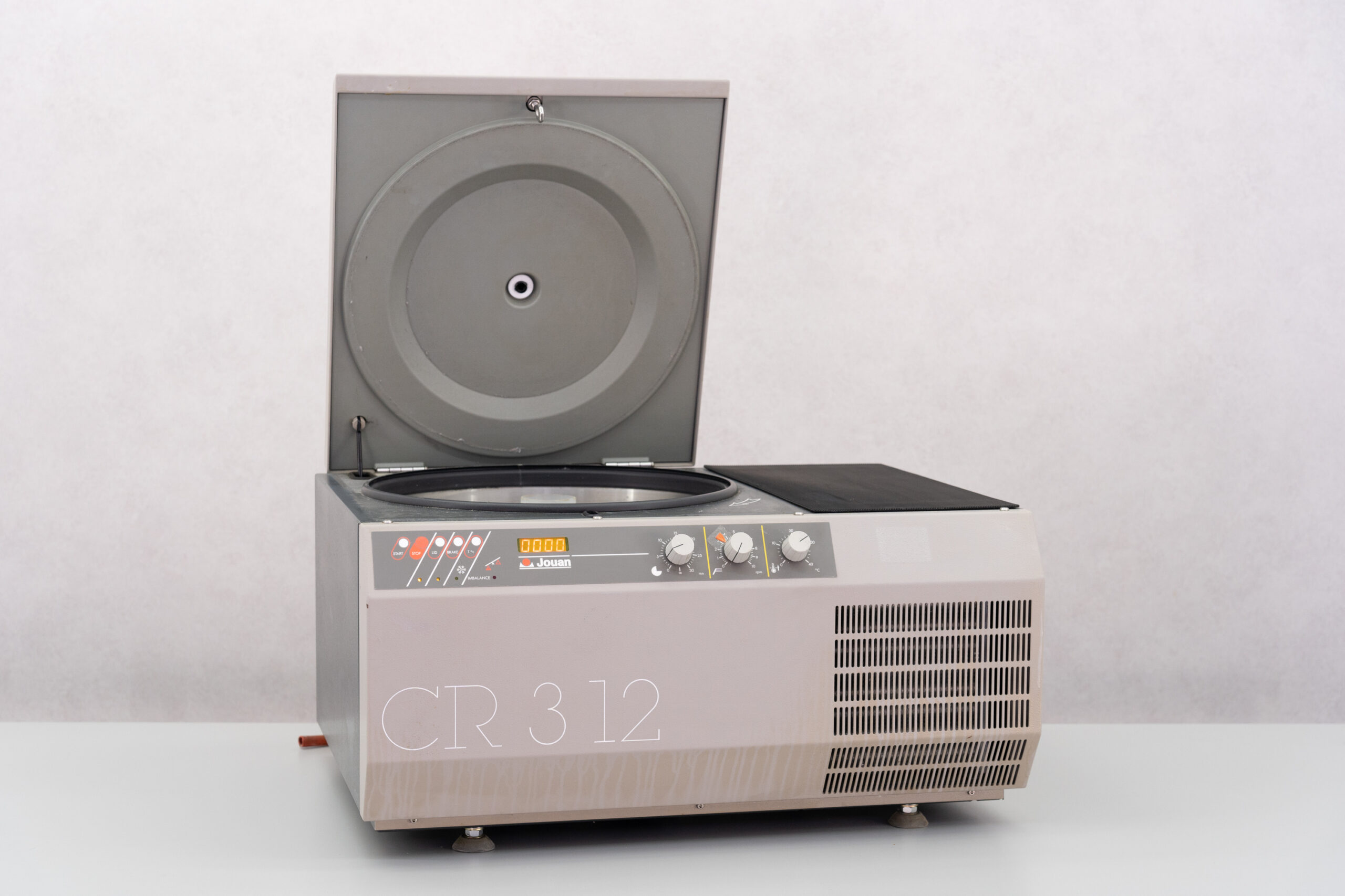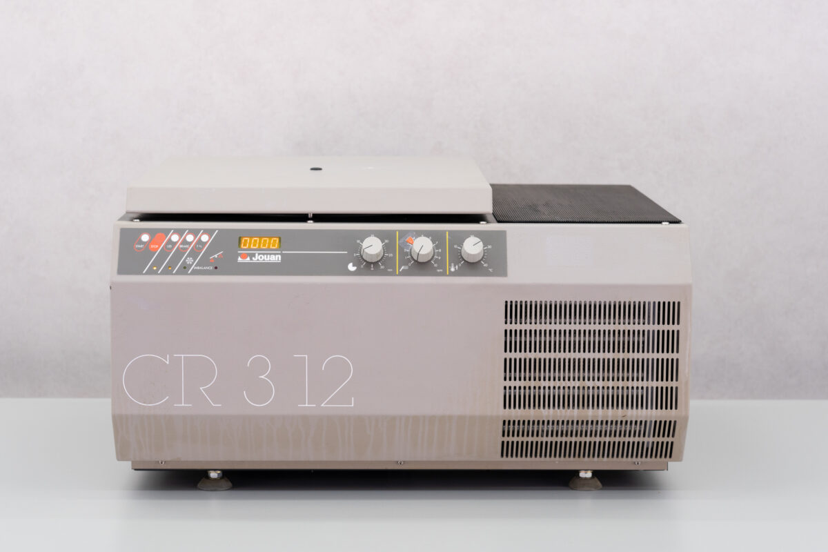 The Jouan CR312 is a medium capacity refrigerated benchtop centrifuge used for sample spin-off or concentration. It has analogue controls with digital LCD 4-digit speed display, imbalance detection and rotor shut-off.