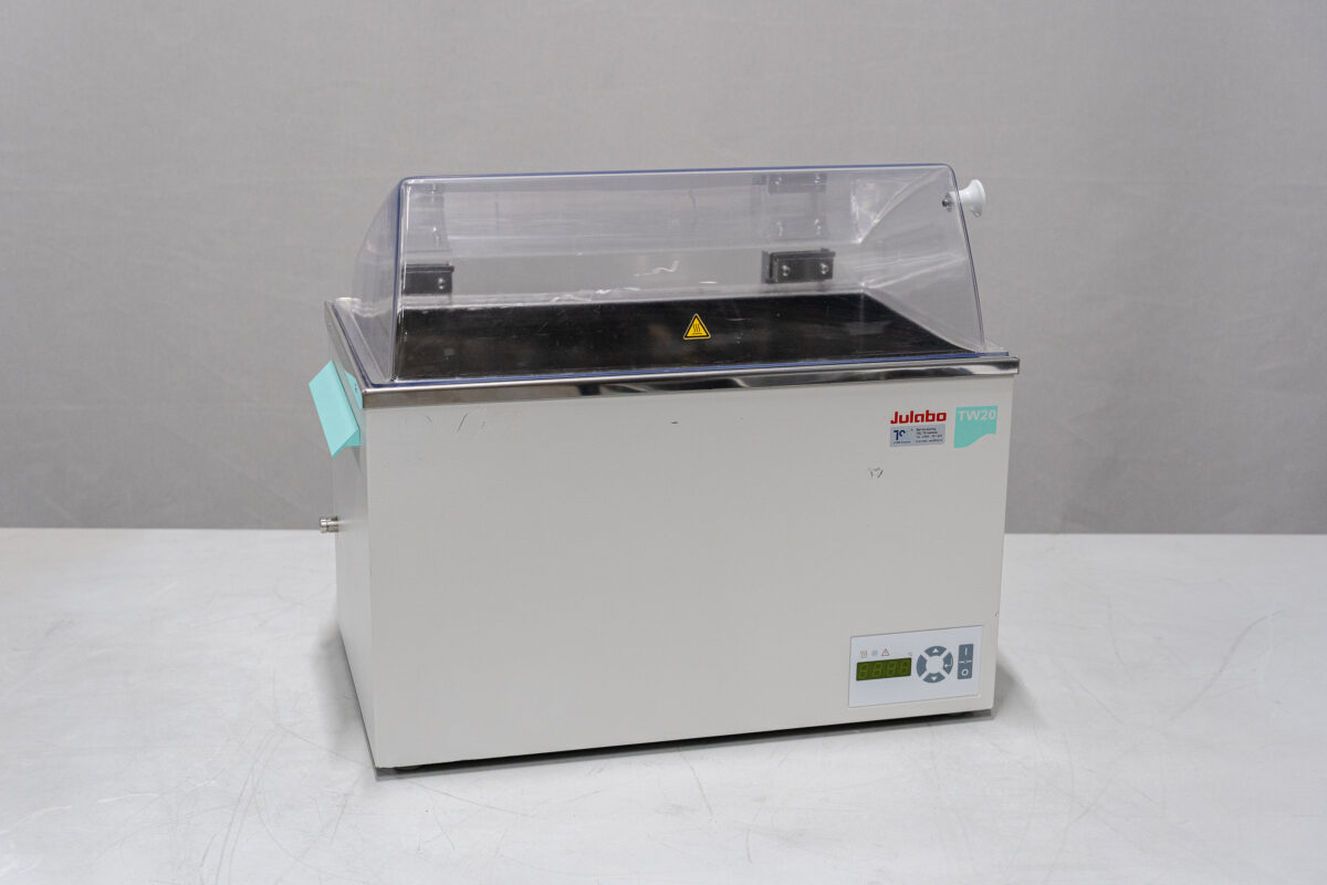 The Julabo TW20 is a high-quality water bath that, thanks to microprocessor control and stable PID temperature control, is suitable for reliable temperature conditioning of samples, reagents, culture vessels, glassware, and materials. It is versatile and suitable for routine laboratory tasks such as incubation, thawing/warming of samples, temperature testing, materials testing, and corrosion testing. The design is safe and user-friendly: splash protection, waterproof controls, dry-run protection, and an optional lid make it suitable for continuous use.