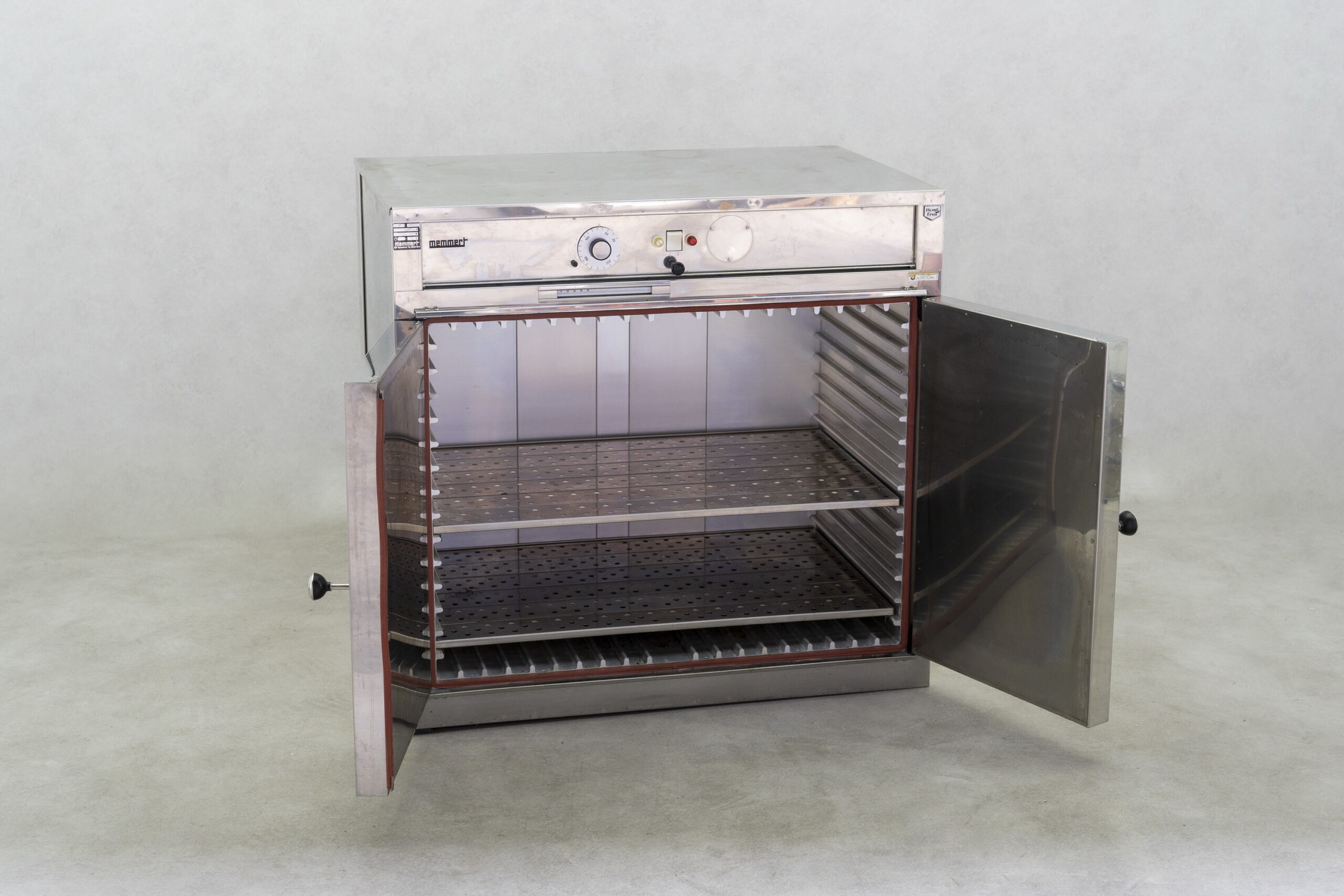 This used laboratory oven / drying oven from Memmert has natural convection and can be set with a control knob.