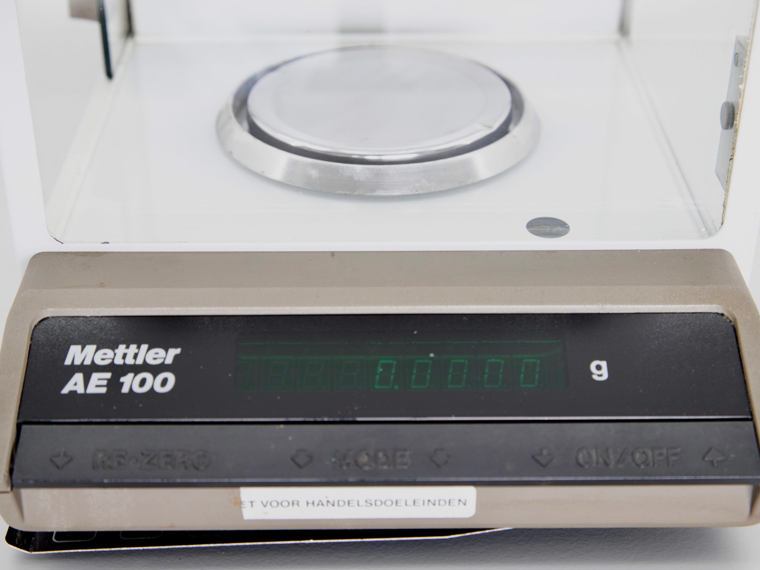 The balance of the brand Mettler type AE100 is ideal for weighing different materials with a maximum weight of 1009 grams.