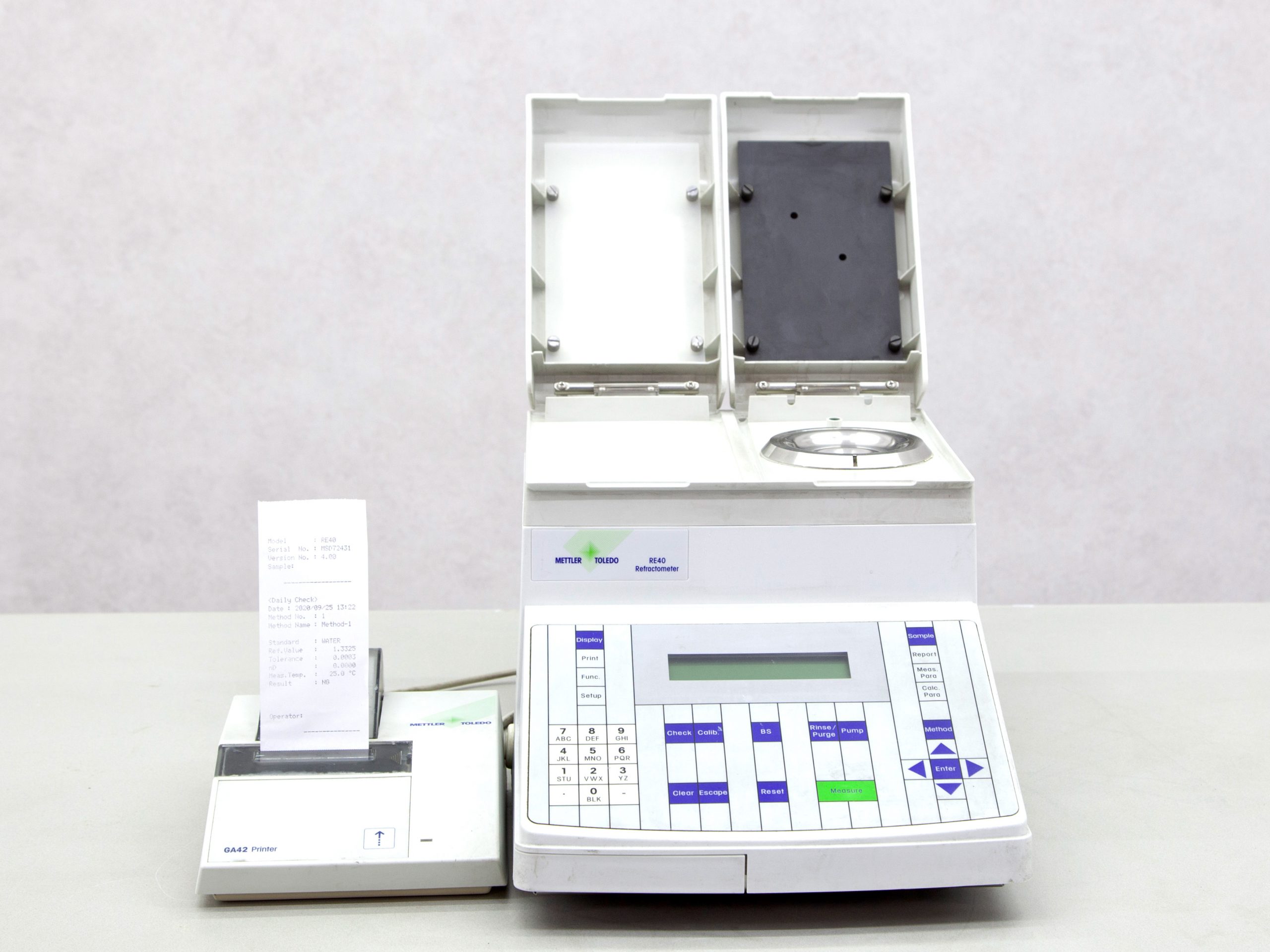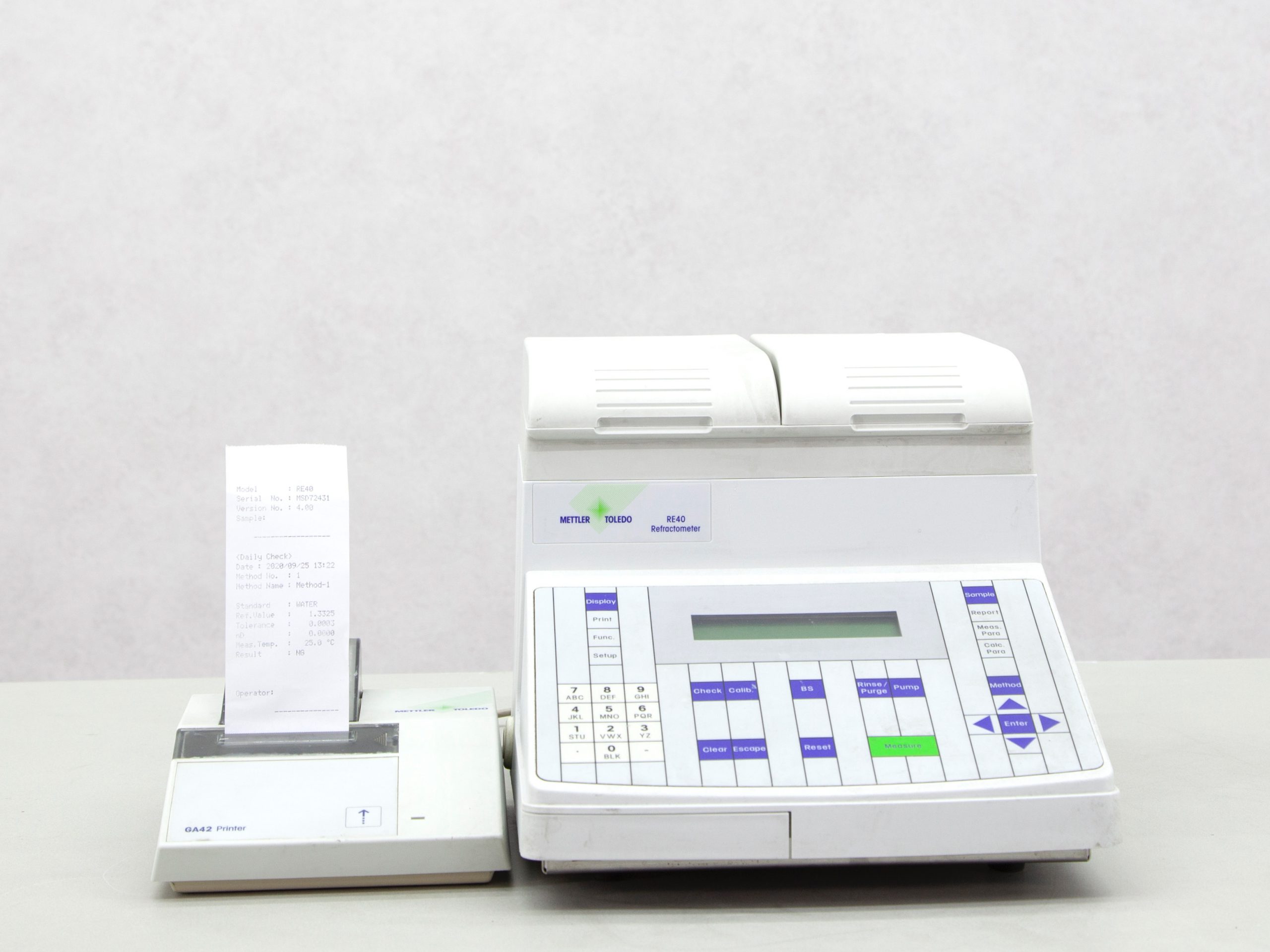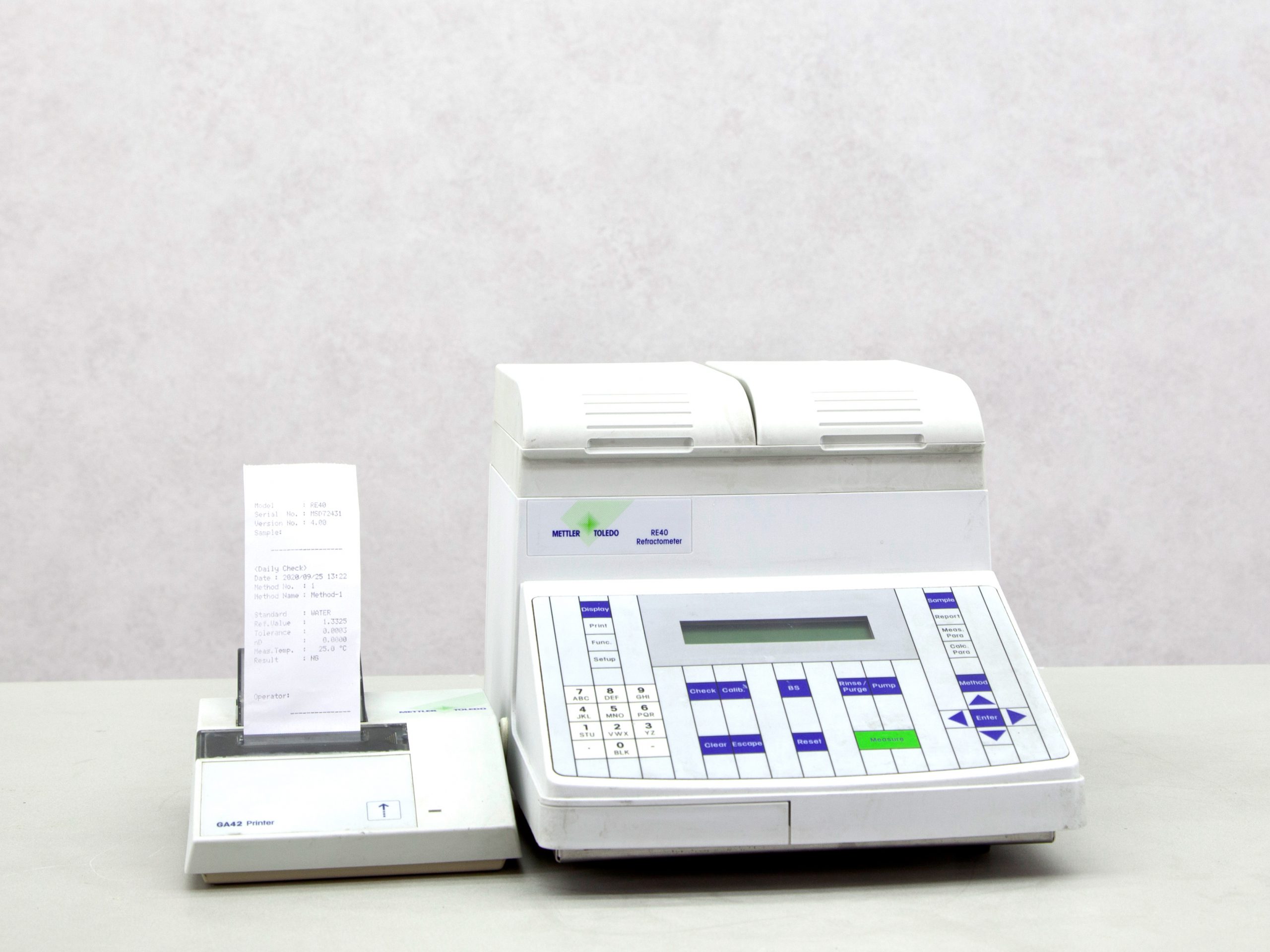 The RE40 refractometer is used for the simple determination of the refractive index of liquid samples. The Mettler Toledo RE40 measures samples with a refractive index in the range of 1,3200 to 1,7000.
