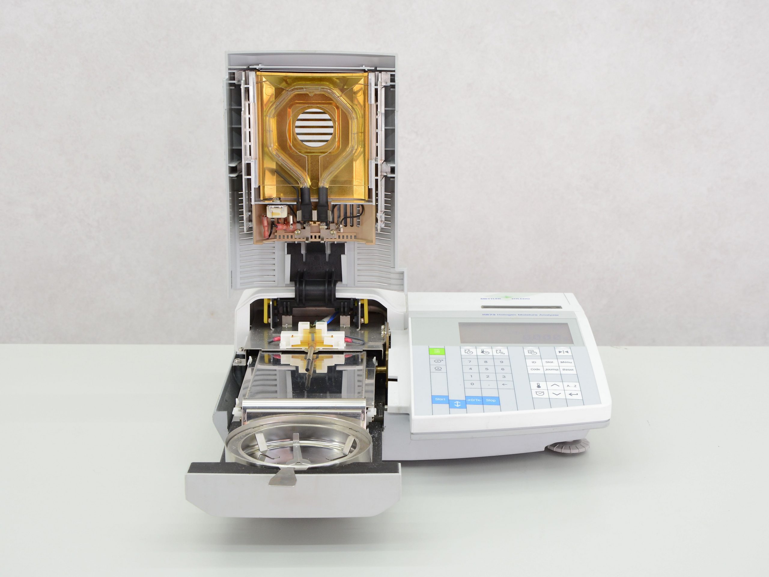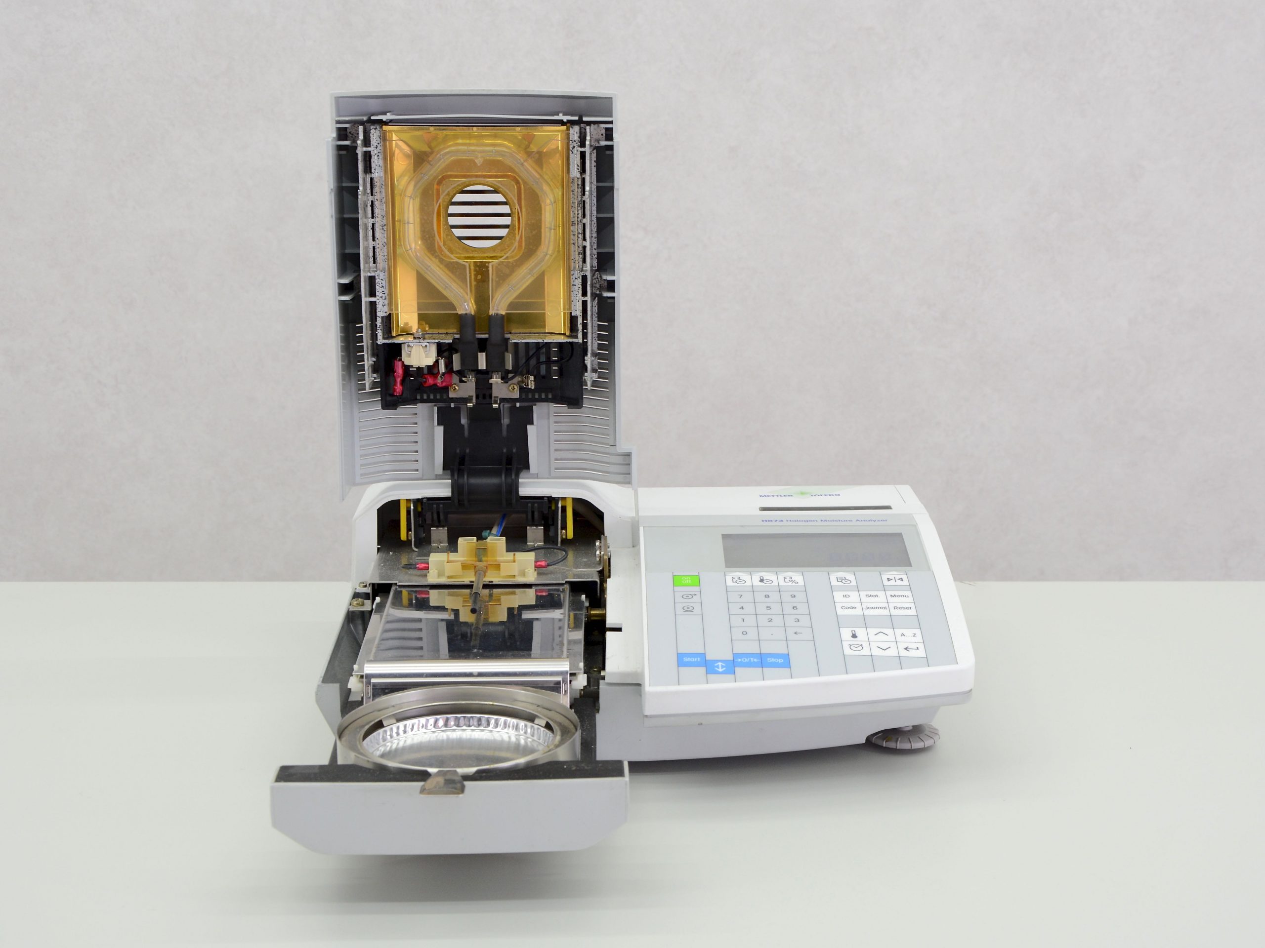 The moisture analysator balance of the brand Mettler type HR73 is ideal for the accurate determination of moisture in different materials, including liquid, pasty and solids using the thermogravimetric method. In addition, this moisture determination balance is provided with halogen heating.