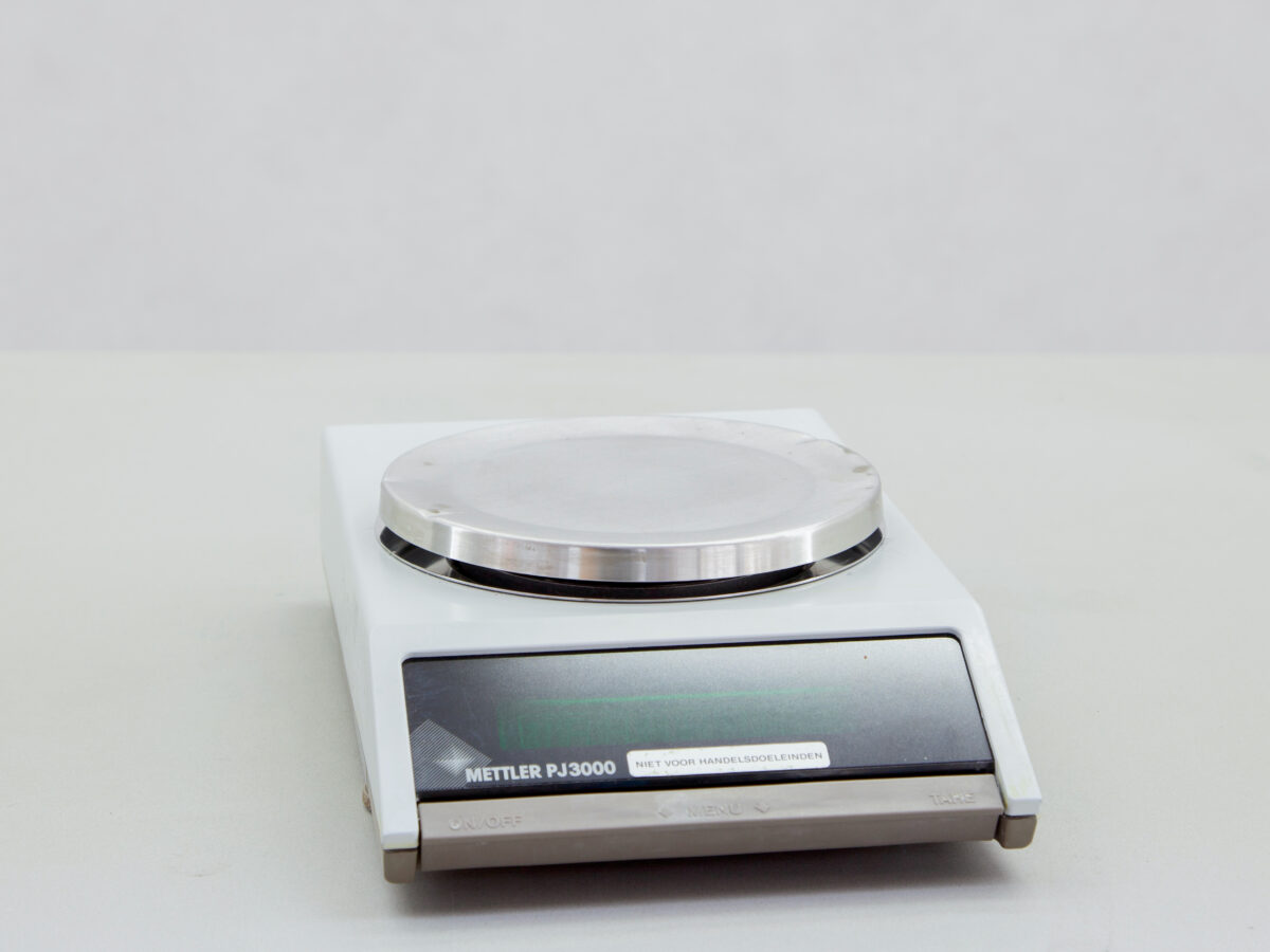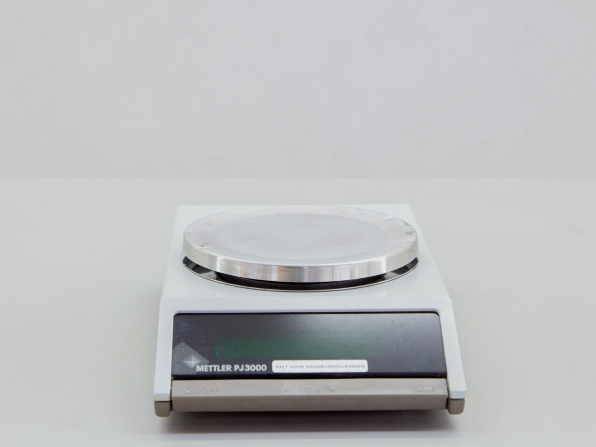 The balance of the brand Mettler type PJ3000 is designed for weighing materials with a maximum weight of 3000 grams.