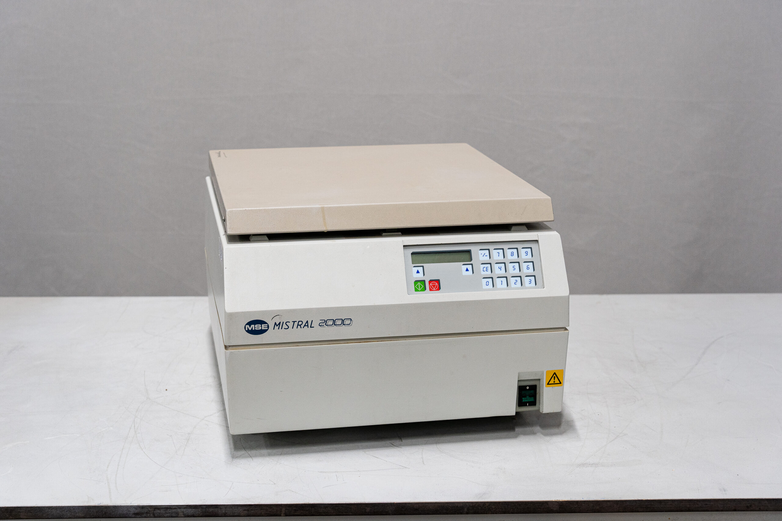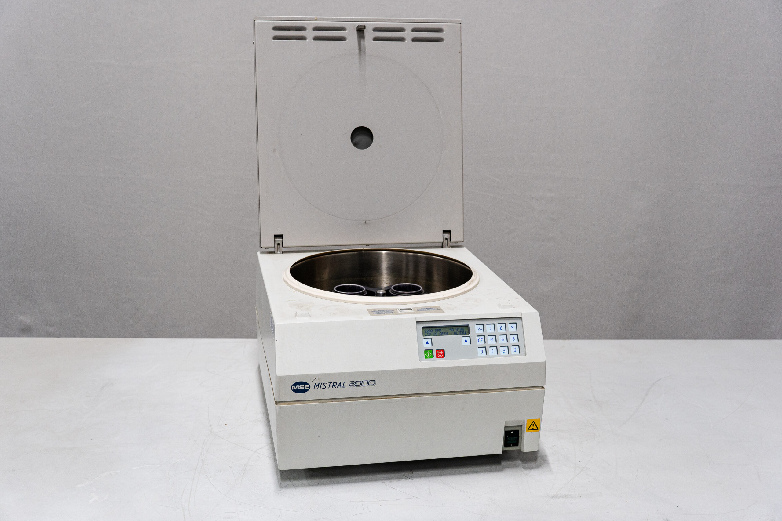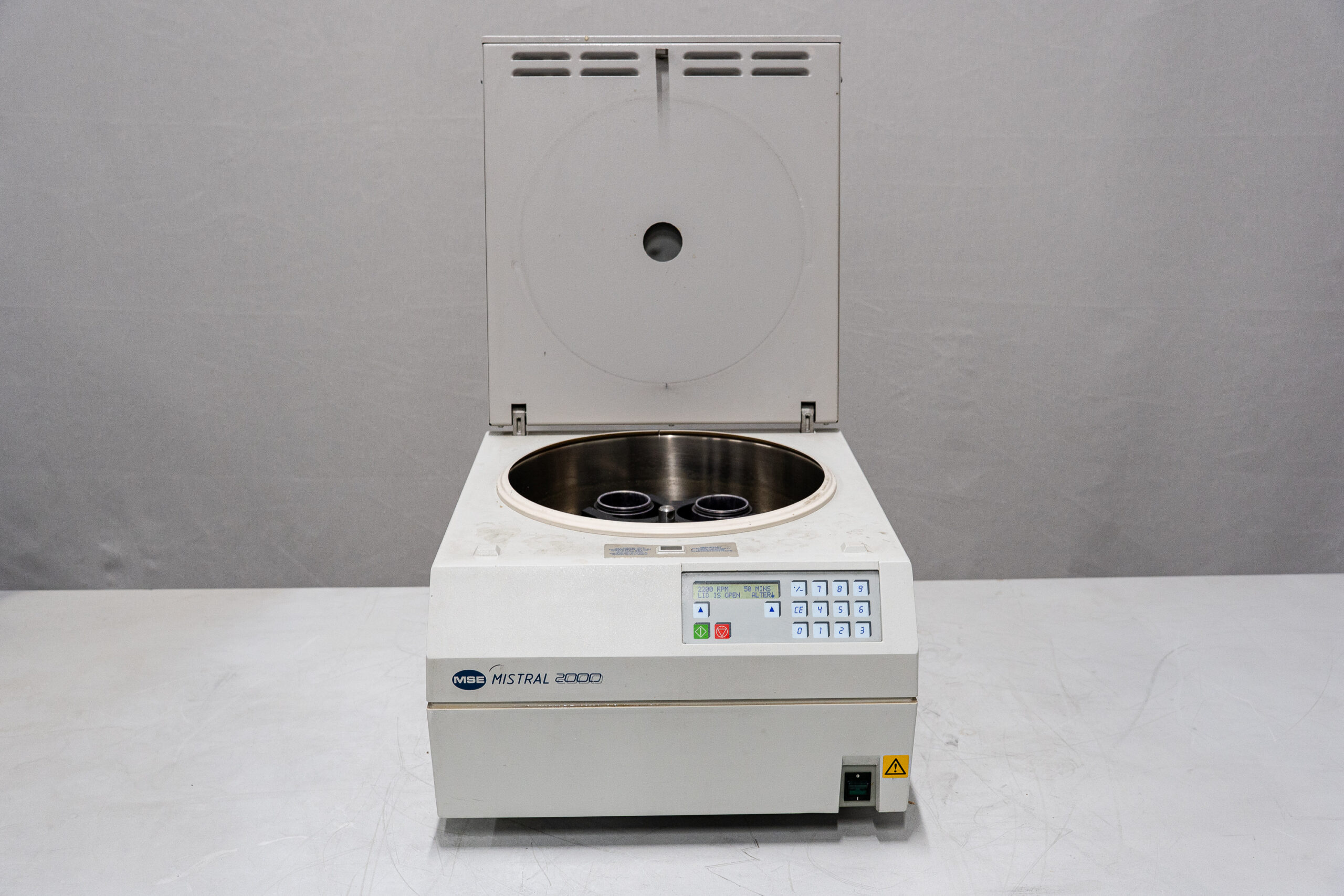 The Mistral 2000 is a compact, powerful benchtop centrifuge for general laboratory use. It offers speeds up to approximately 4,500 rpm and a maximum capacity of 2 liters (4 × 250 mL). Thanks to its microprocessor control, timer function, and safety features such as lid lock and imbalance detection, the centrifuge is suitable for routine tasks in clinical, research, and industrial laboratories.