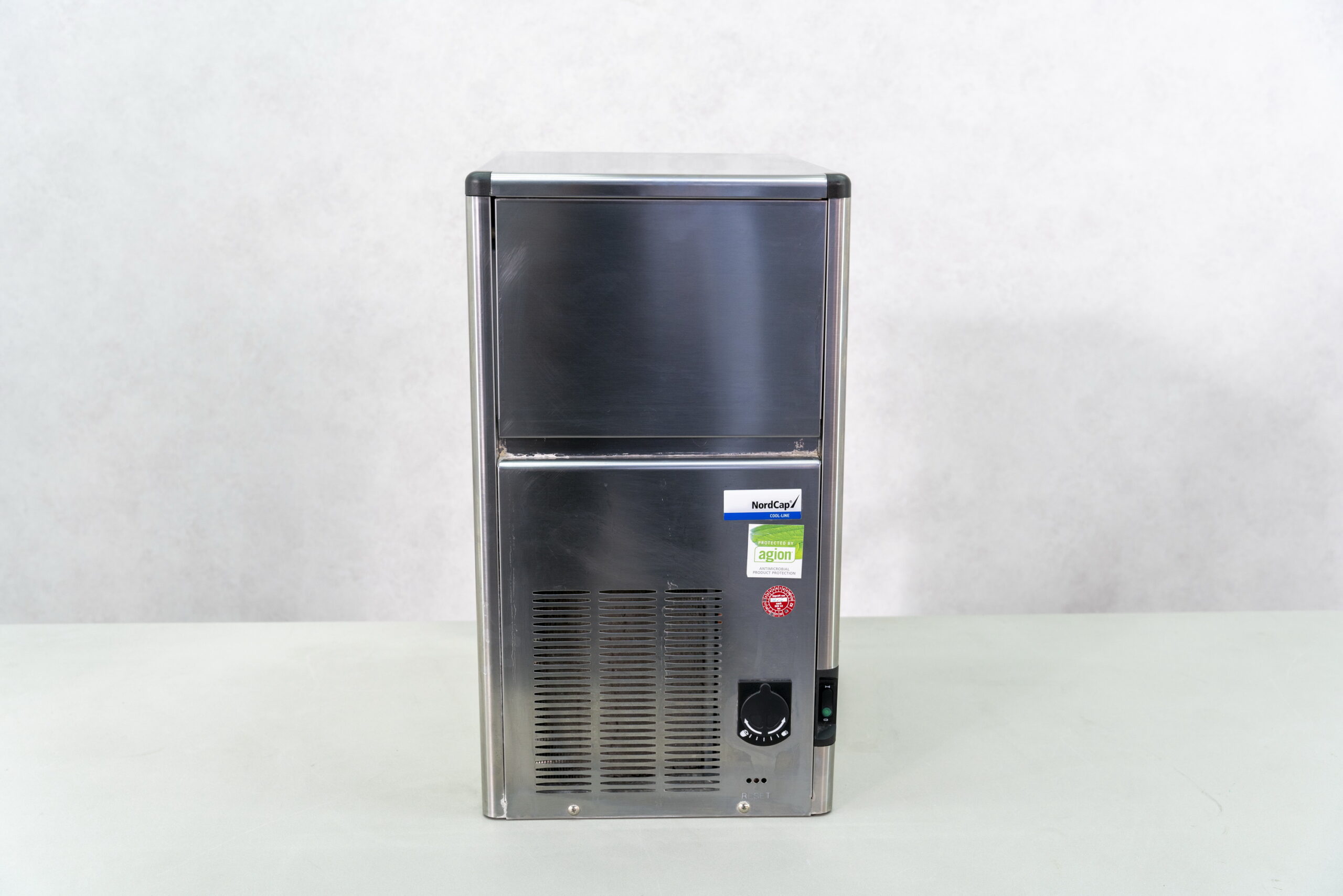 The COOL by Nordcap ice cube machine SDN 20-L has an integrated storage container and an antibacterial coating. The Cube One Maker produces hollow ice cubes. The ice cube machine is ready to plug in and air-cooled.