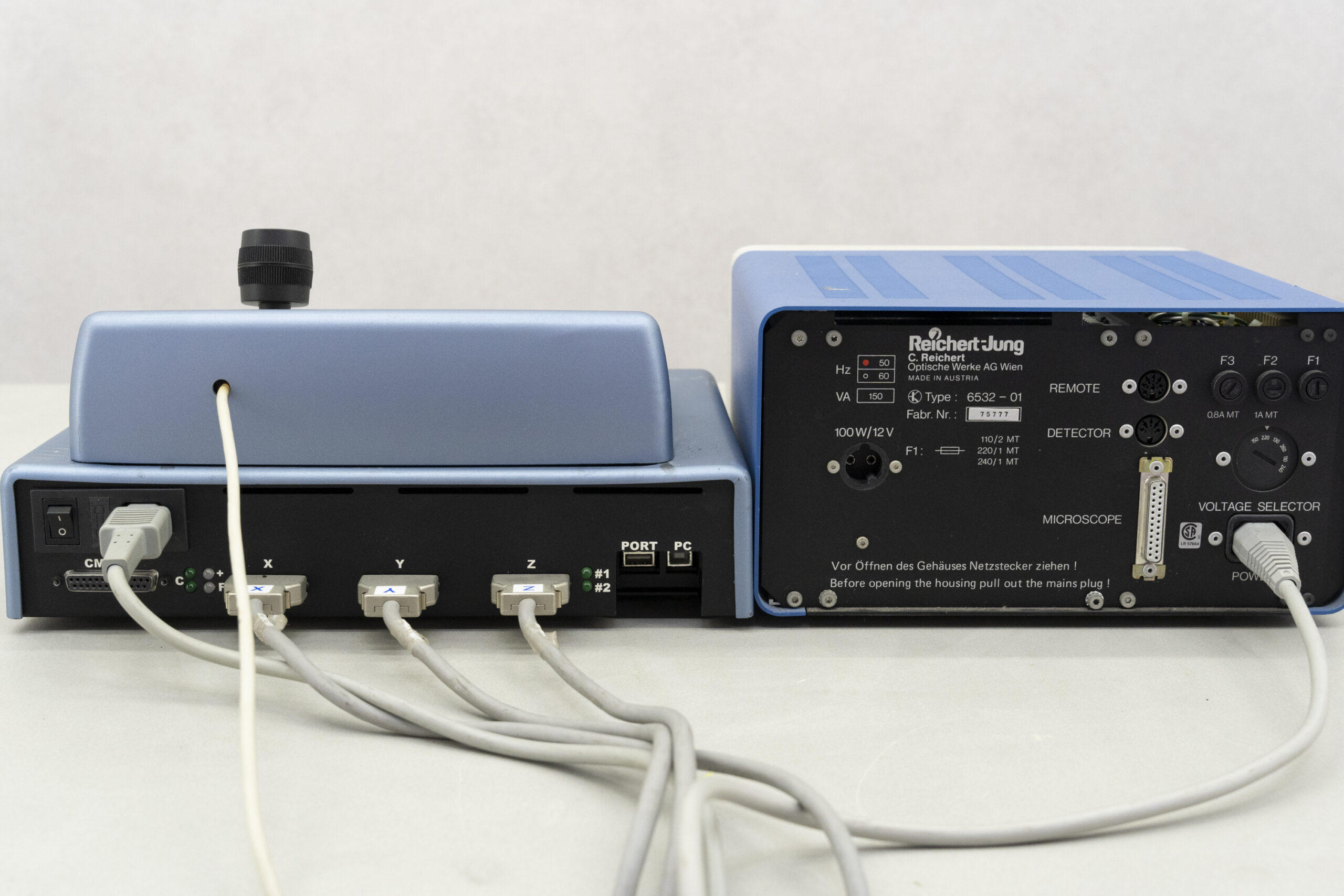 The Reichart-Jung MeF3 Metallurgical Microscope with Clemex joystick is a traditional inverted microscope that can be used to analyze a variety of materials from ceramics to thin films. Being an inverted microscope, it has a natural advantage when it comes to photographing flat-polished samples, eliminating the negative effects of grinding and polishing, such as chamfering.