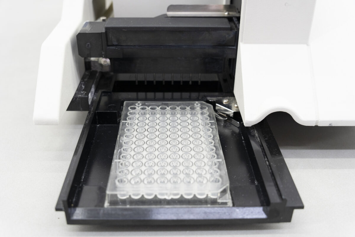 A 2 x 8 channel microplate washer from Sanofi, type PW 40, with built-in vacuum and dispersion pump designed for efficient washing of the contents of 96-well plates. Detectors of the liquid level in the wash and waste bottle and the vacuum ensures a consistent washing and aspiration process. Complete and easy to program.