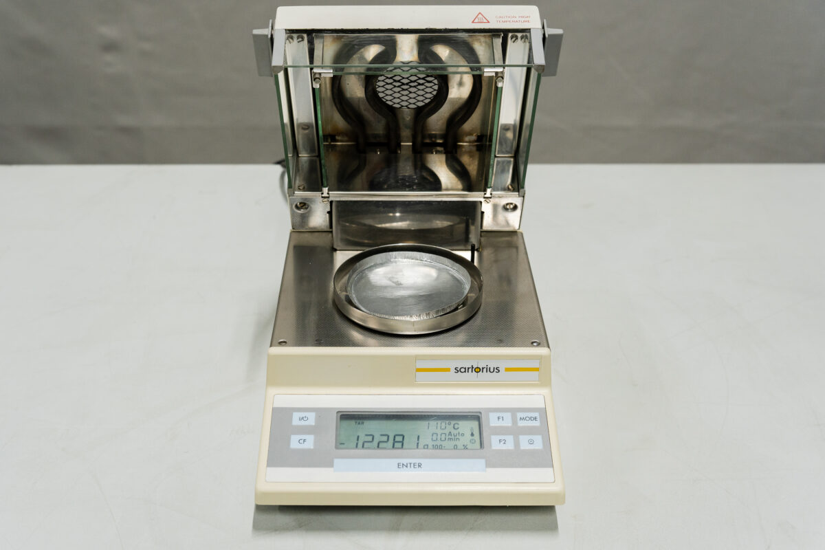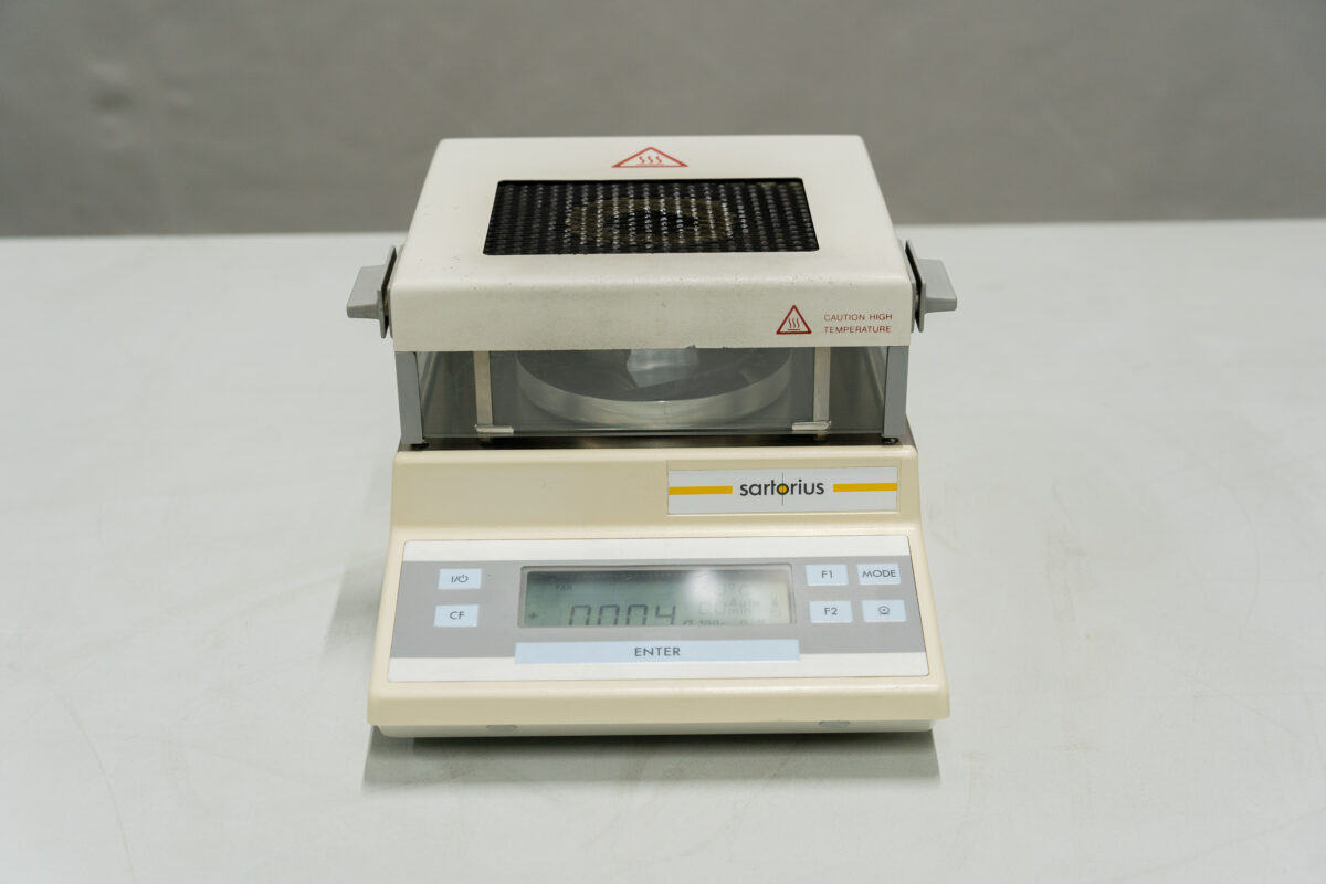 The Sartorius MA30 Moisture Analyzer is a precision instrument designed for accurate moisture content determination using infrared heating. With a maximum sample weight of 30 grams and a readability of 0.01%, this analyzer guarantees reliable results for a variety of materials. It features an intuitive glass panel display, uniform infrared heating and an advanced temperature control system. Ideal for applications requiring accurate moisture measurement, the MA30 combines robust performance with user-friendly operation.