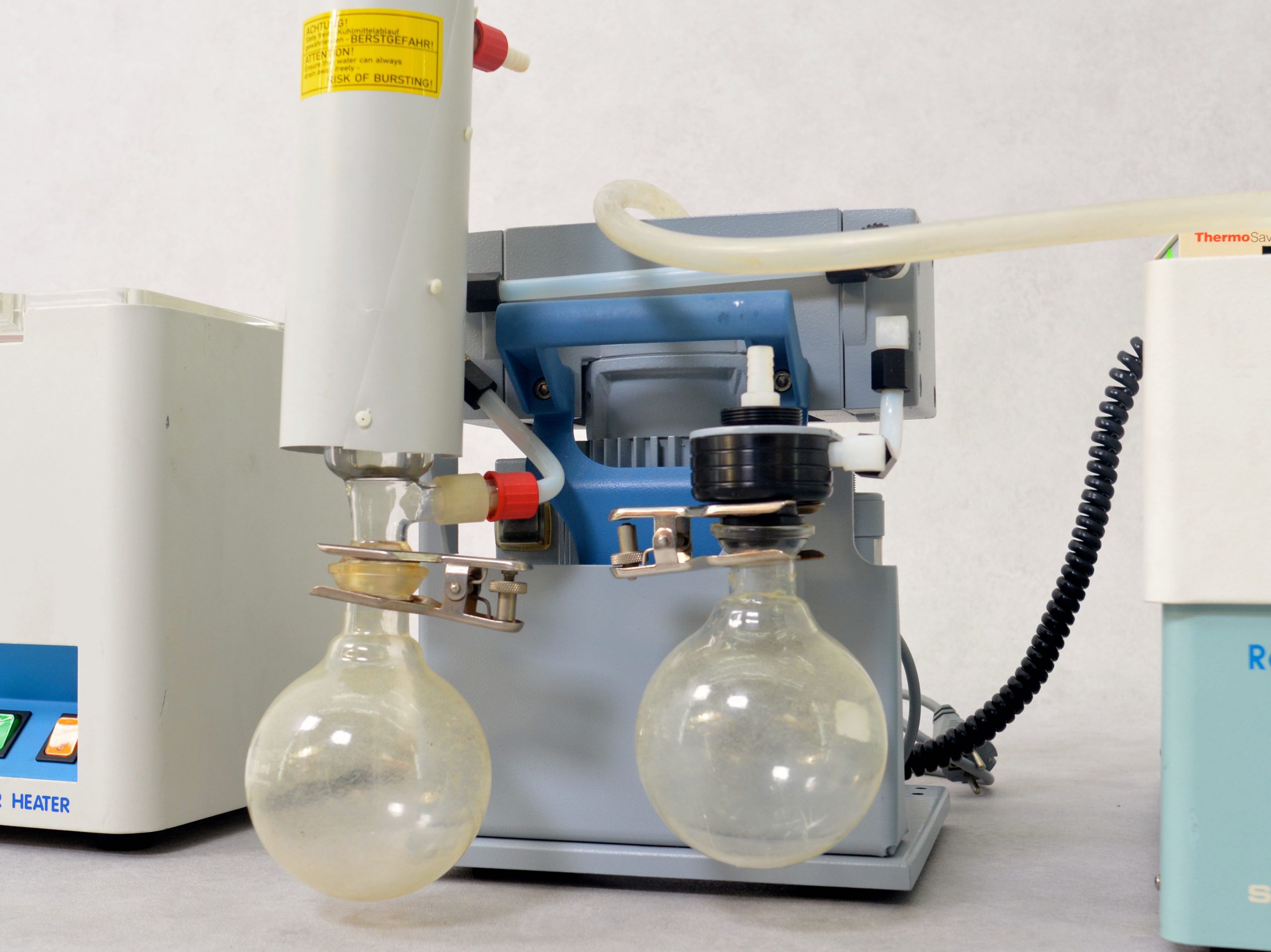 The vacuum pumps will be protected against harmful acids in water, alkaline and organic solvents that are released during bioresearch operations. Such vapors can damage pump parts and break down the pump oil, which increases the risk of corrosion.