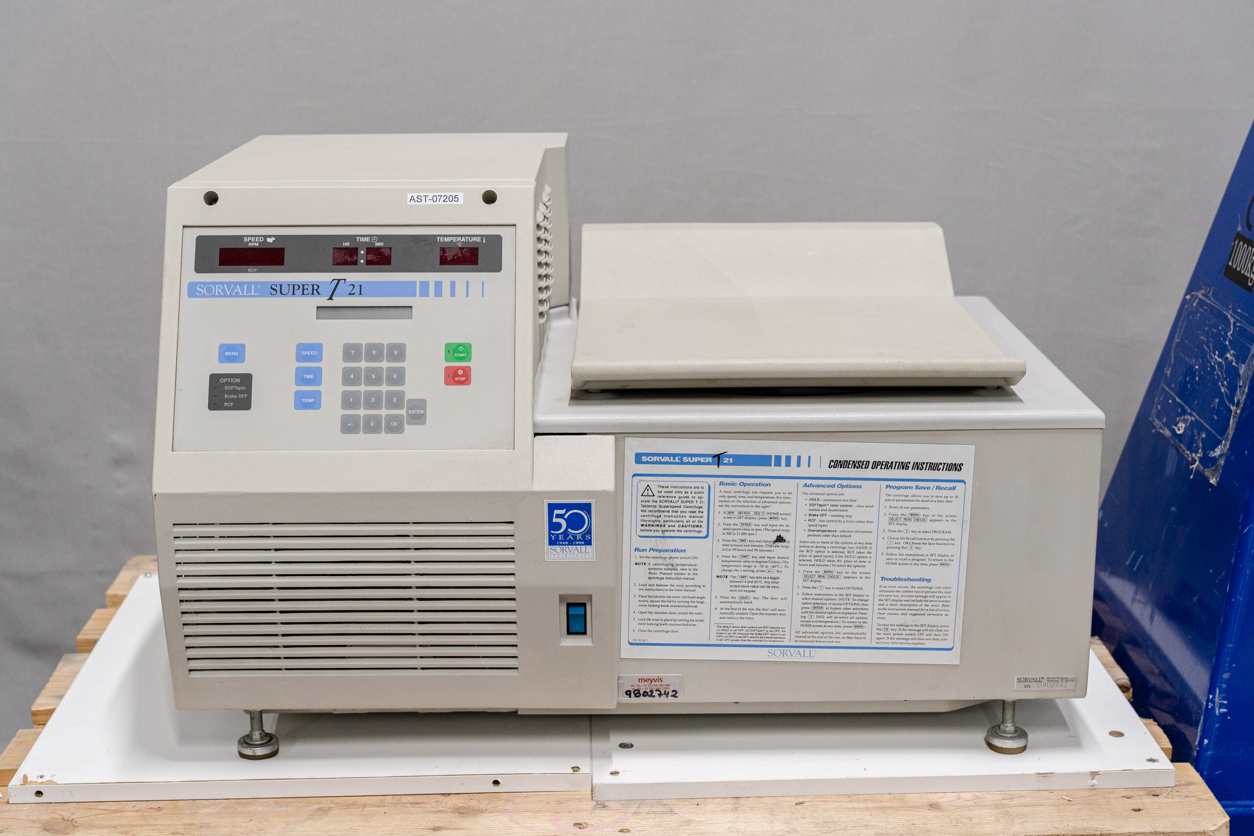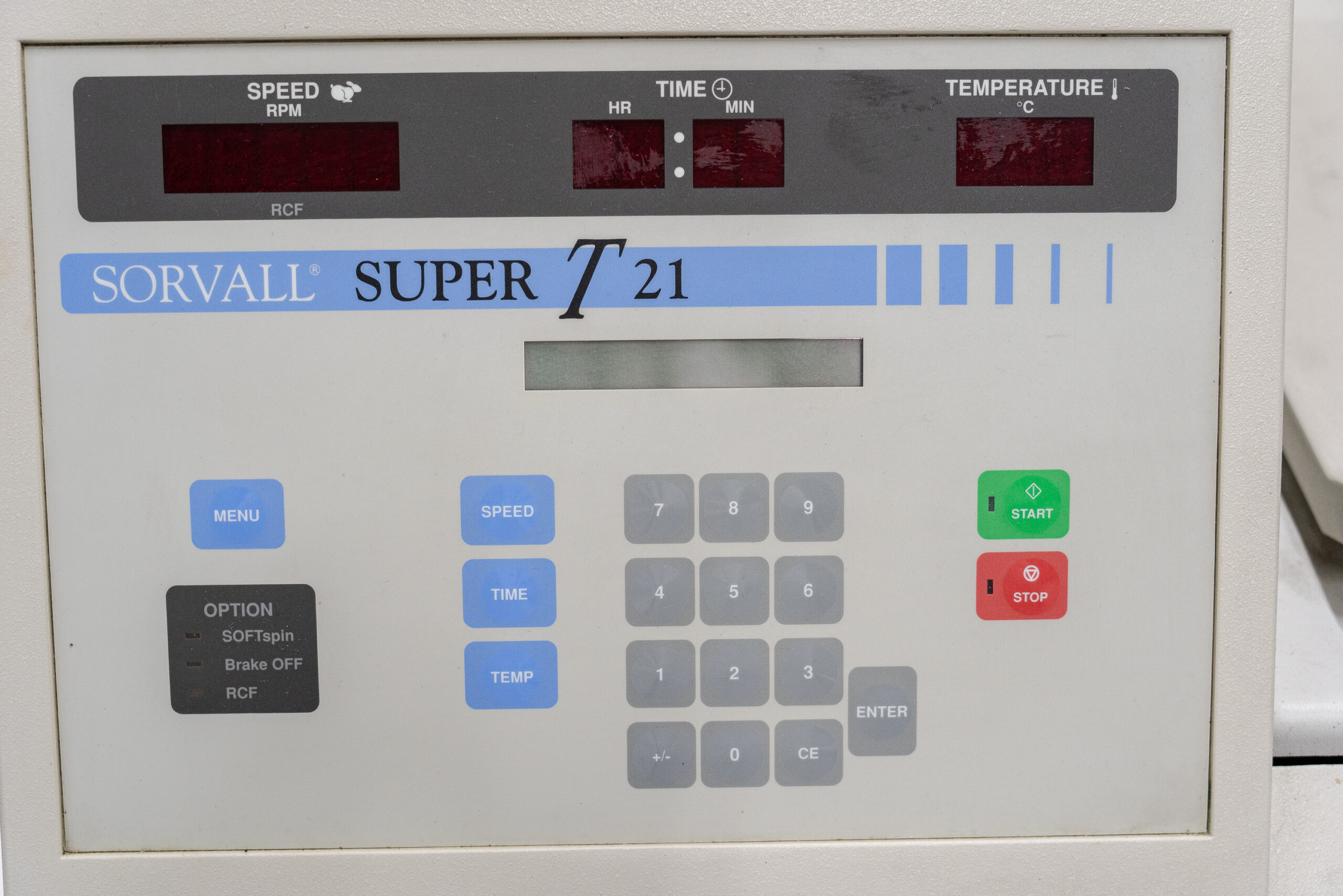 The Sorvall Super T21 Benchtop Centrifuge is a benchtop centrifuge that combines the speed and capacity of a floor-standing model with the size of a benchtop centrifuge. It is designed for versatility: you can centrifuge microtubes, conical tubes, flasks, large volumes up to approximately 3 liters, and even microtiter plates—depending on the rotor chosen. The Super T21 offers refrigerated centrifugation (temperature control), programmable runs, gentle acceleration/deceleration (less damage to cells/delicate samples), and a direct-drive motor for reliability and low maintenance.