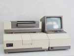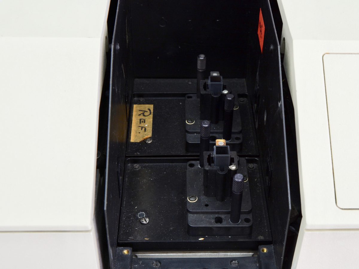 The spectrophotometer of the brand Perkin Elmer type Lambda 5 is eminently suitable for determining the concentration of a substance in a sample by measuring the absorption of visible light in the sample.
