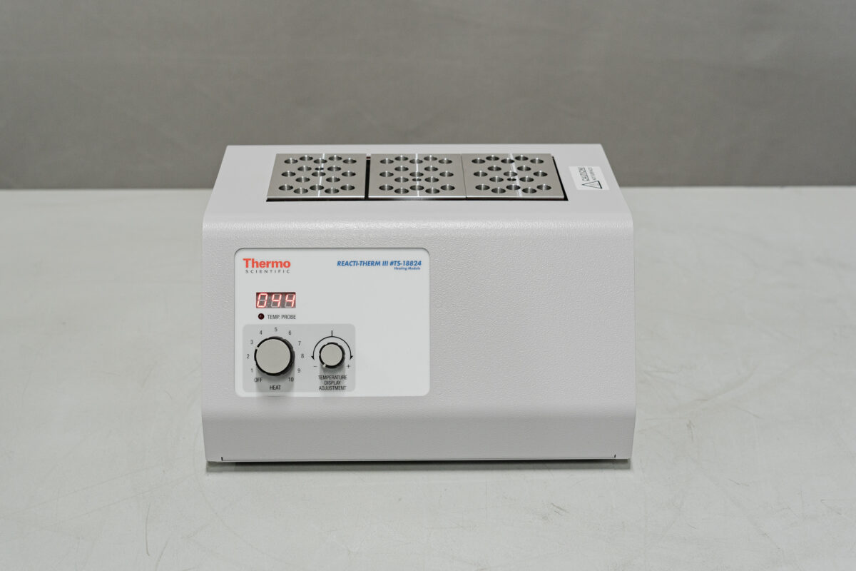 The Thermo Fisher Scientific Reacti-Therm III Heating Block is an easy-to-use dry block heater that provides constant temperature control. It is ideal for the heating and evaporation required for sample preparation prior to analysis by gas chromatography, high performance liquid chromatography, and other methods.