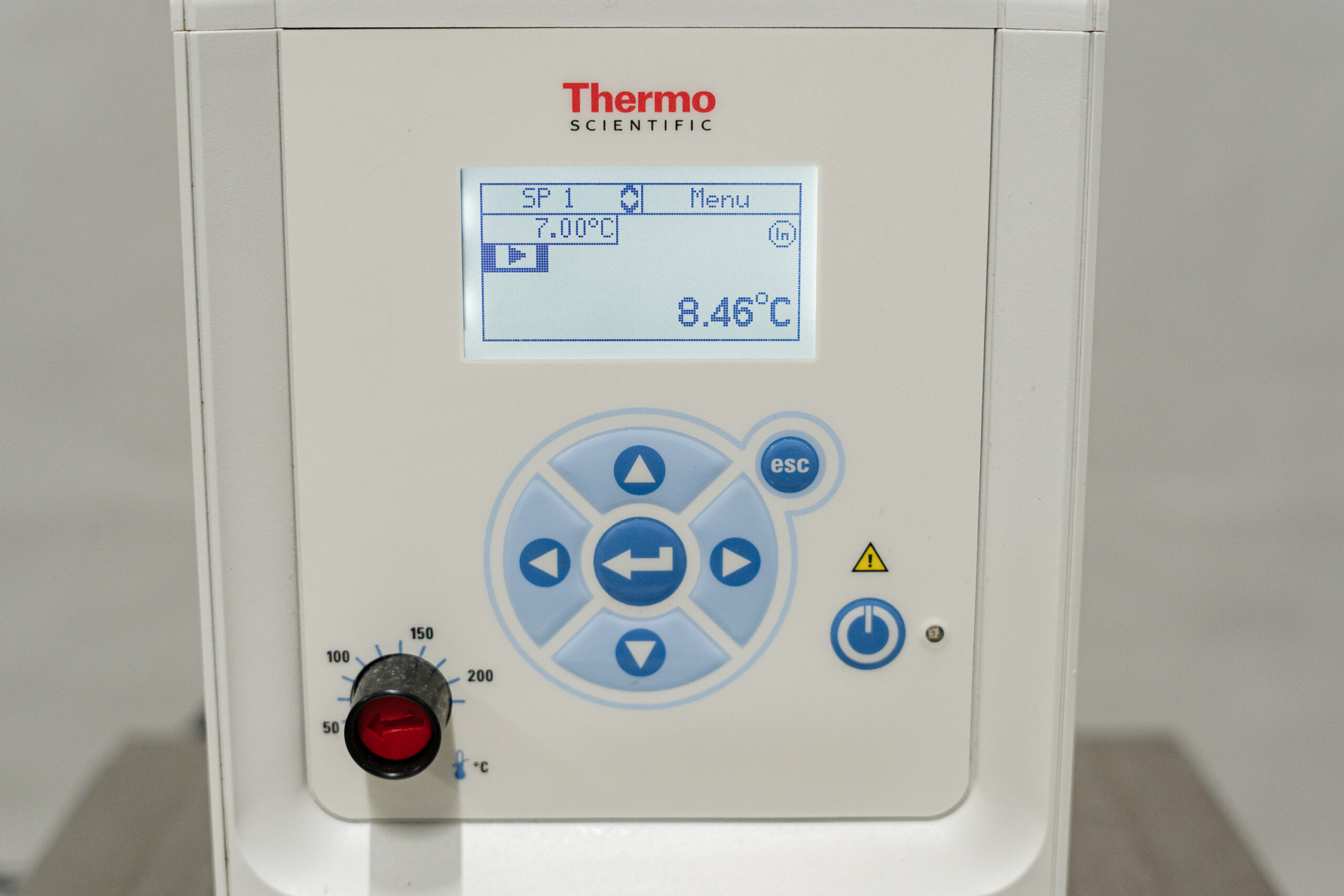 The Thermo Haake A25-SC150 Heating and Cooling Water Bath offers powerful cooling, extended temperature ranges and advanced controller technology. These robust, compact units provide precise temperature stability and high reliability for external circulation and in-bath applications. The immersion bath circulator provides excellent agitation in the bath for improved uniformity and stability.